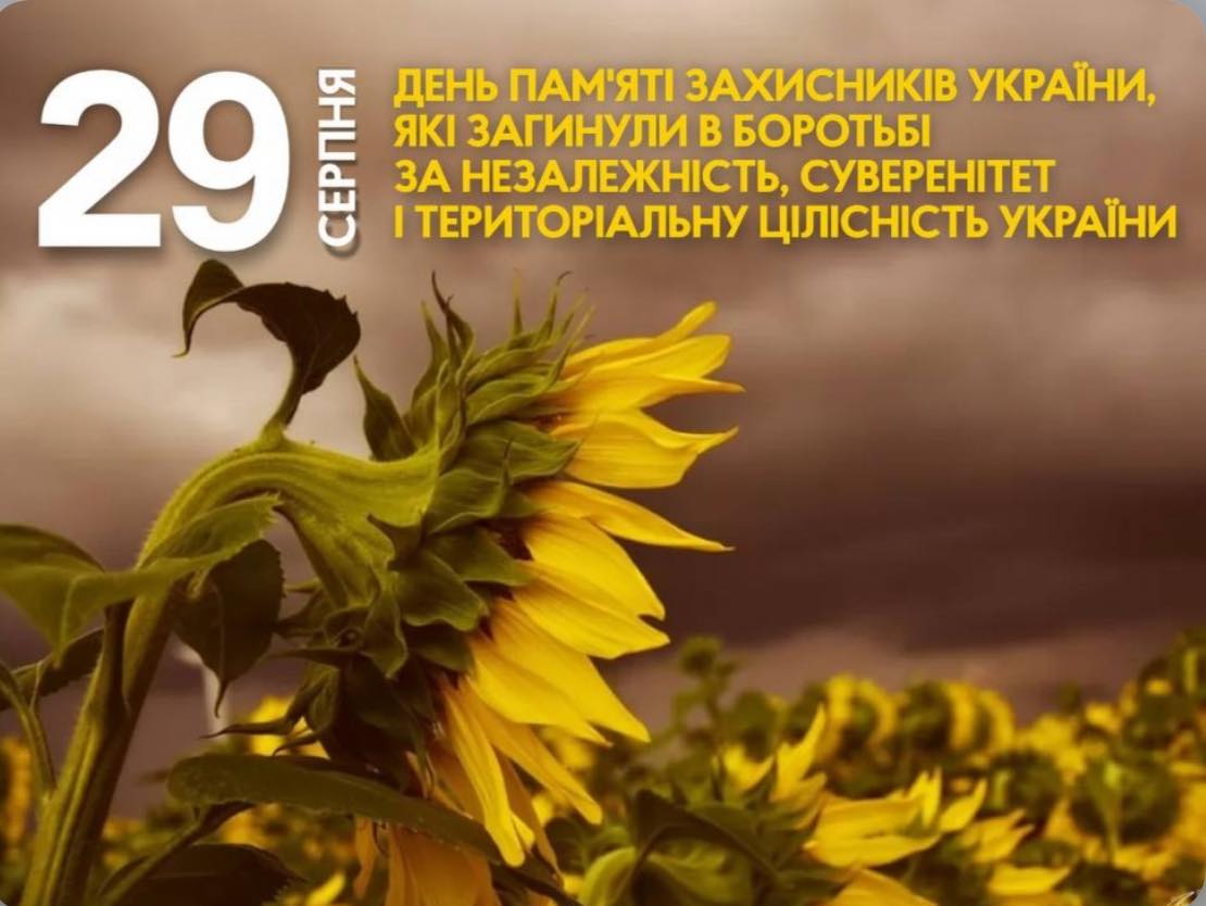 29 серпня – День пам’яті захисників України, полеглих у боротьбі за незалежність, суверенітет і територіальну цілісність нашої держави. Ця скорботна дата нагадує нам про подвиг тих, хто віддав своє життя за Україну. Особливо трагічними були події кінця серпня 2014 року, коли під час виходу з Іловайського котла загинули сотні українських воїнів від рук агресора. Символом цього дня став сонях – квітка, що вкриває українські поля у серпні, символізуючи обірване війною життя та незламний дух українського народу. Ми вшановуємо пам’ять усіх, хто поклав найдорожче – своє життя – заради свободи та майбутнього нашої Батьківщини. Вічна пам’ять і слава справжнім героям України! 🕯️🇺🇦
