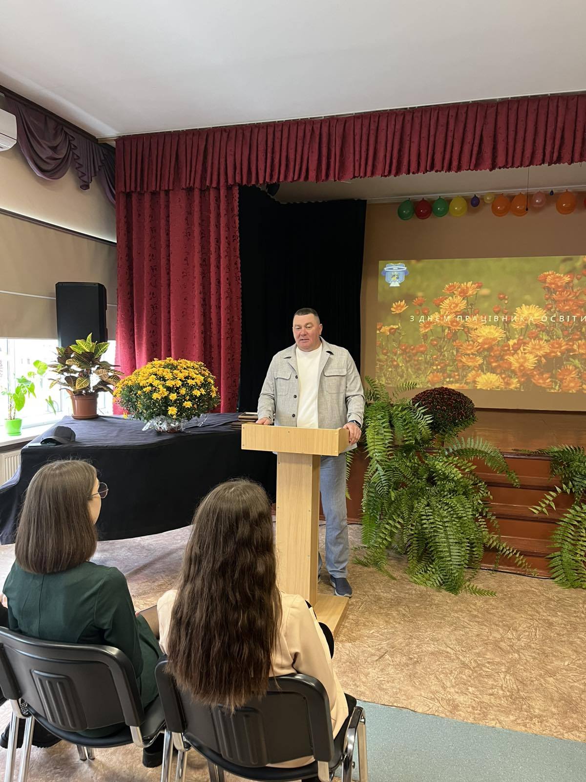 З теплими словами привітань до освітян звернулися сільський голова Микола Каськів та начальник управління гуманітарного розвитку та охорони здоров’я Андрій Хоменко. Вони підкреслили важливість ролі вчителів у суспільстві та висловили щиру вдячність за самовіддану працю.