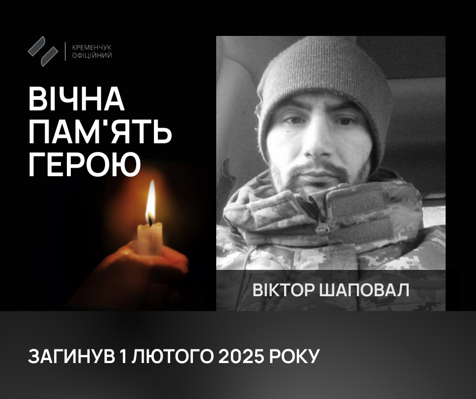 Віктор Шаповал загинув 1 лютого 2025 року на Донеччині, виконуючи бойове завдання. Він боронив Україну, її суверенність та територіальну цілісність, залишаючись вірним Військовій присязі та Українському народові. Його жертовність ніколи не буде забута. Кременчук сумує разом із родиною та близькими.