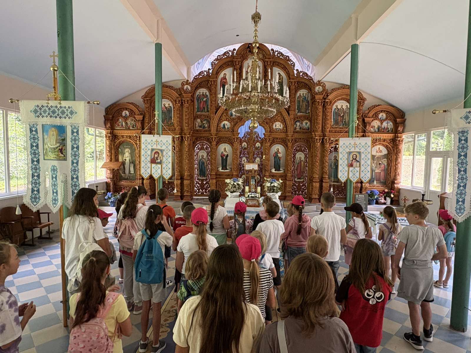Тут діти мали змогу взяти участь в екскурсії та молебні у храмі Положення ризи Діви Марії, яку провів служитель Назарій.