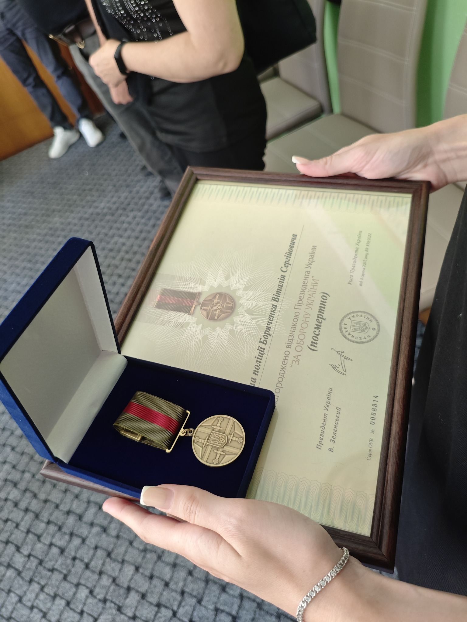 Сьогодні, 5 серпня, в Лугинській селищній раді дружині та батькам загиблого Захисника України, капітана поліції Віталія Боряченка було передано посмертну нагороду – відзнаку Президента України «ЗА ОБОРОНУ УКРАЇНИ».
