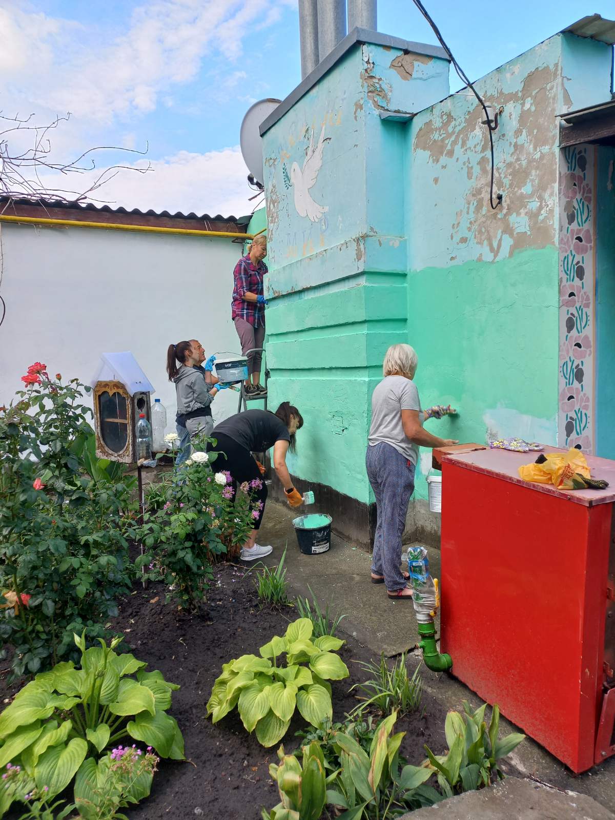 Сьогодні, 7 серпня невгамовний колектив Центру надання соціальних послуг селищної ради після вимушеної невеликої перерви, спричиненої об’єктивними обставинами, продовжив започатковану раніше акцію «Чистий четвер». Цього разу дружно працювали над зовнішнім виглядом фасадів господарських будівель та паркану – шпаклювали, білували та фарбували.