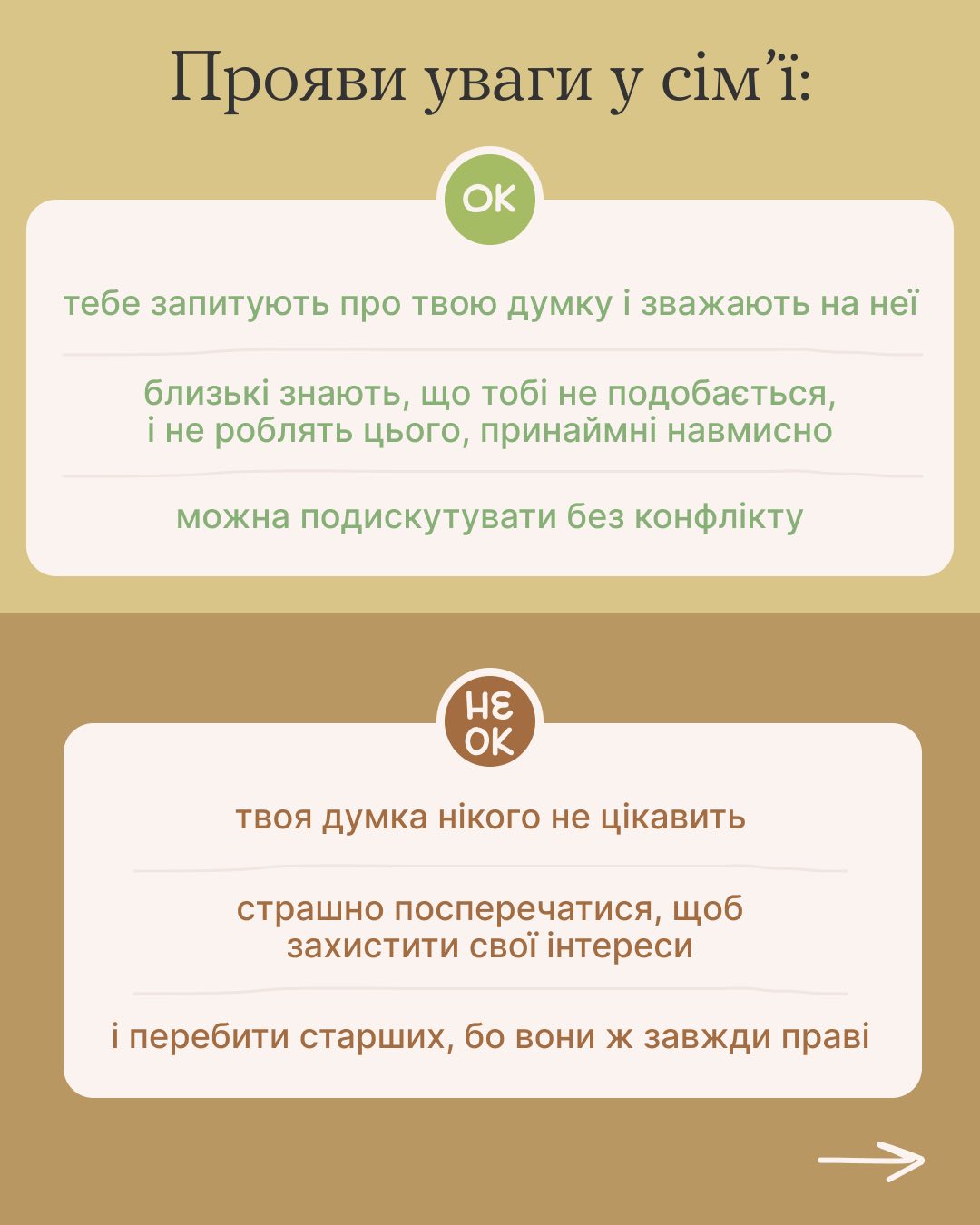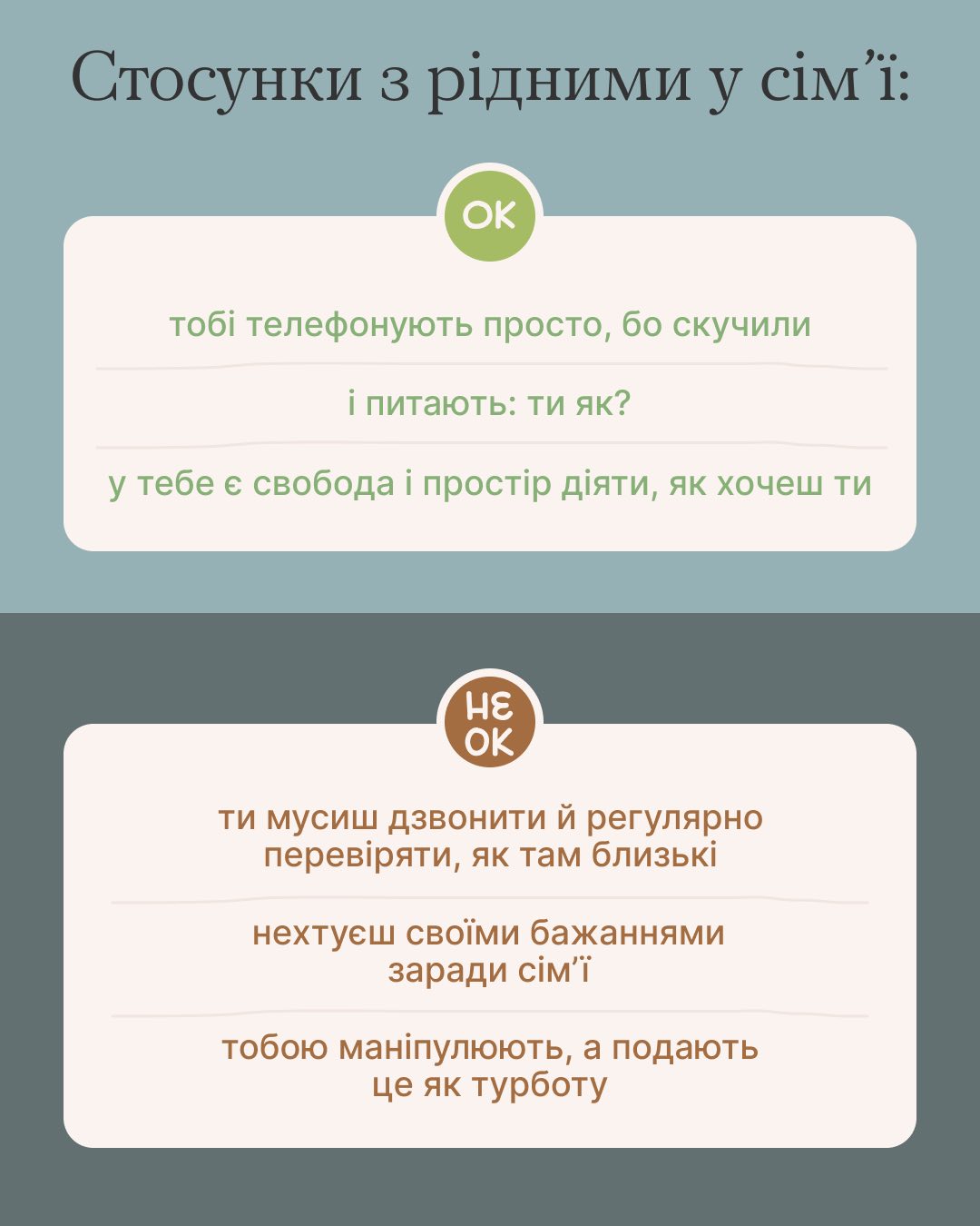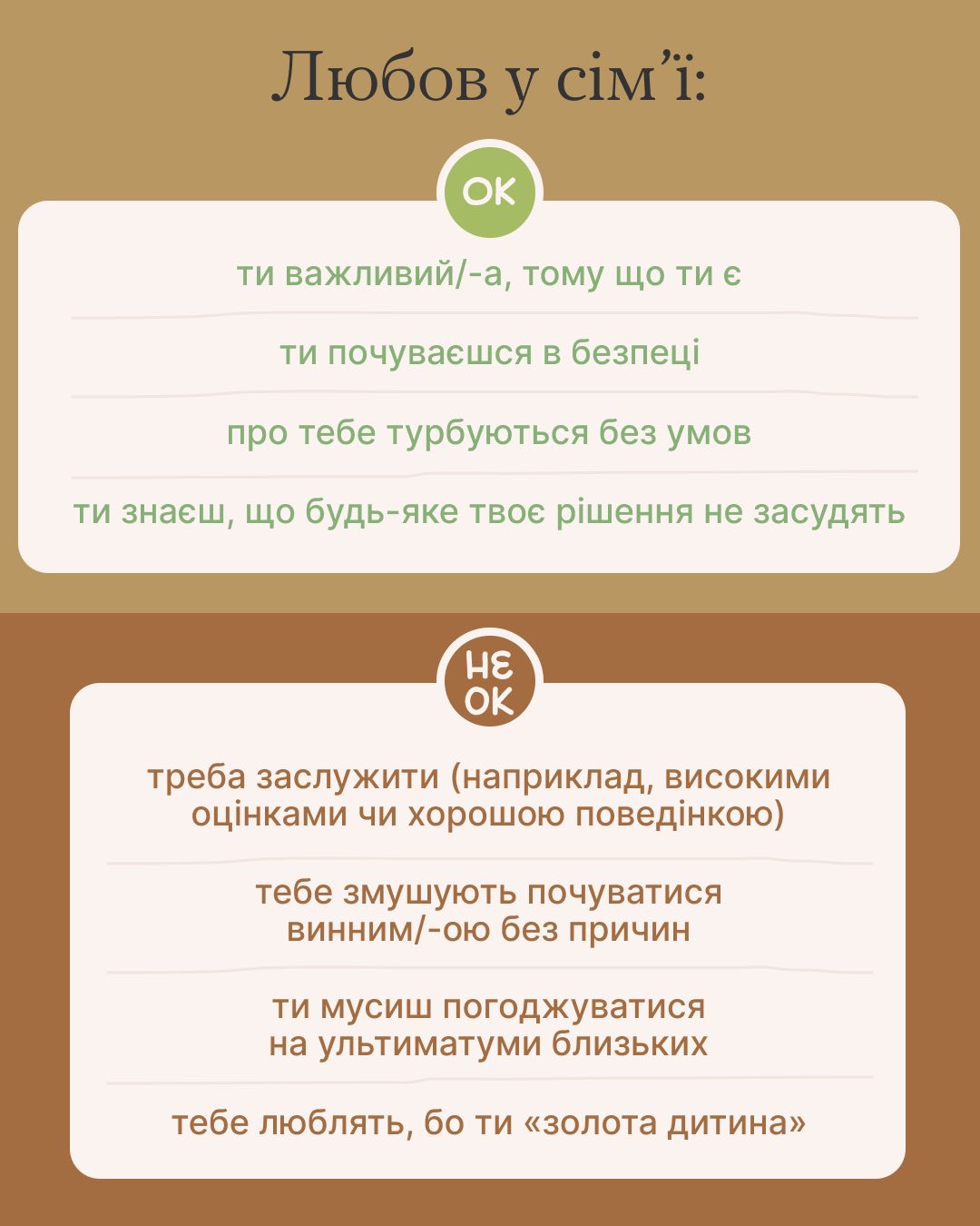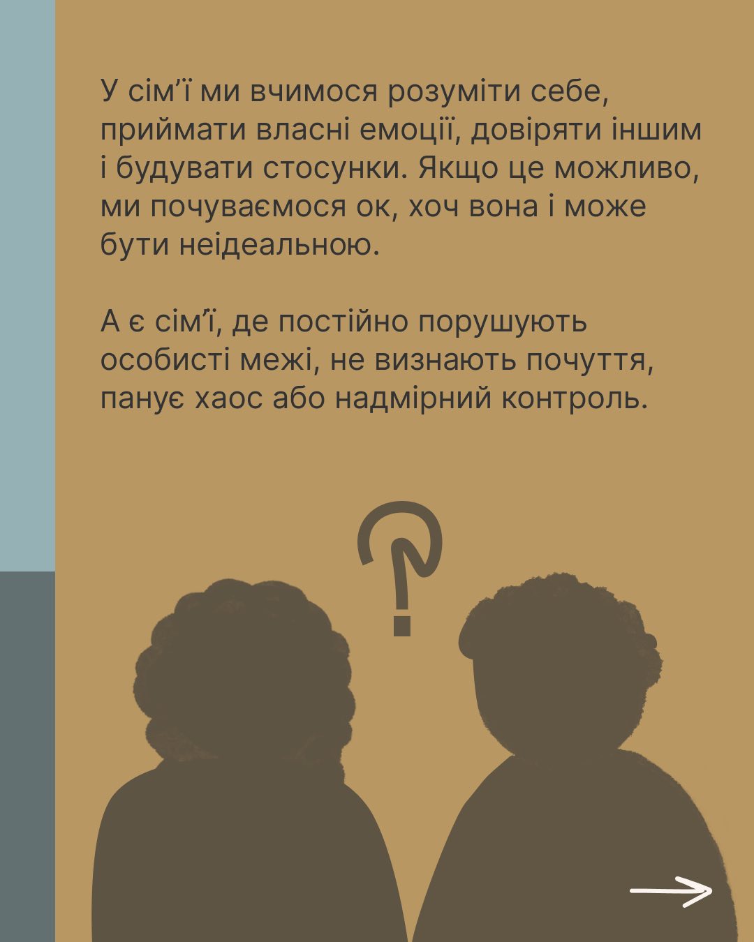 З дитинства ми вчимося взаємодіяти з оточуючими: батьками, братами, сестрами, бабусями та дідусями. Кожна сім’я має свої традиції, цінності та правила, які впливають на формування нашого характеру та ставлення до світу. Деякі сім’ї можуть бути більш відкритими та емоційно підтримуючими, інші – більш суворими та вимогливими. Не існує ідеальної сім’ї, але важливо розуміти вплив кожної з них.