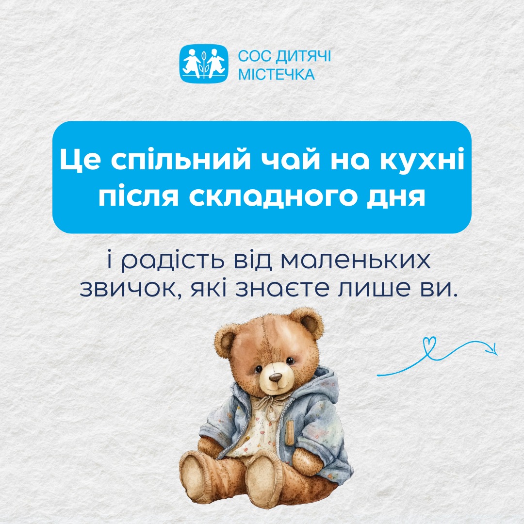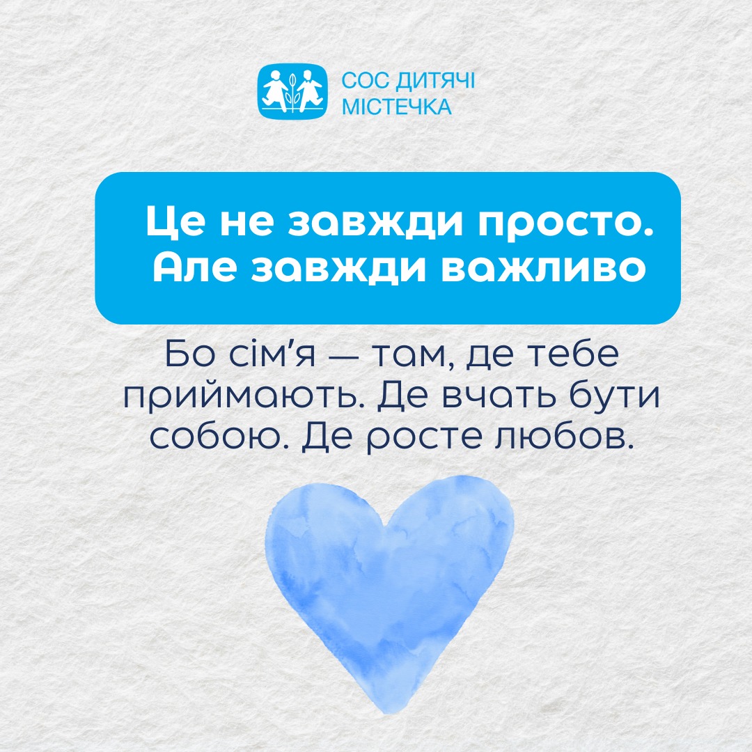 Ми глибоко переконані, що кожна дитина у цьому світі заслуговує на щасливе дитинство, на зростання в атмосфері любові, тепла та взаєморозуміння. У родині, де її потреби чують, її індивідуальність бачать і її приймають такою, якою вона є. І ми кожного дня наполегливо працюємо, щоб ця мрія ставала реальністю для все більшої кількості дітей в Україні. Адже сім’я – це головна цінність.