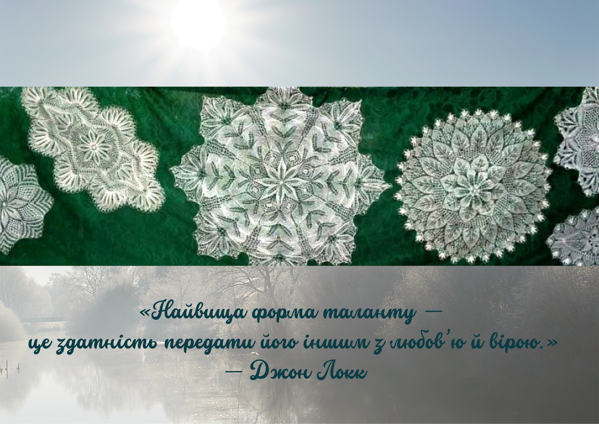 🌼 Хай цей день буде світлим і легким, мов мережана нитка у руках майстрині. Нехай у кожному нашому дні буде хоч трохи краси — тієї, що надихає, заспокоює і додає сил. Ми захоплюємося талантом Людмили Бовсунівської та її здатністю створювати прекрасне.