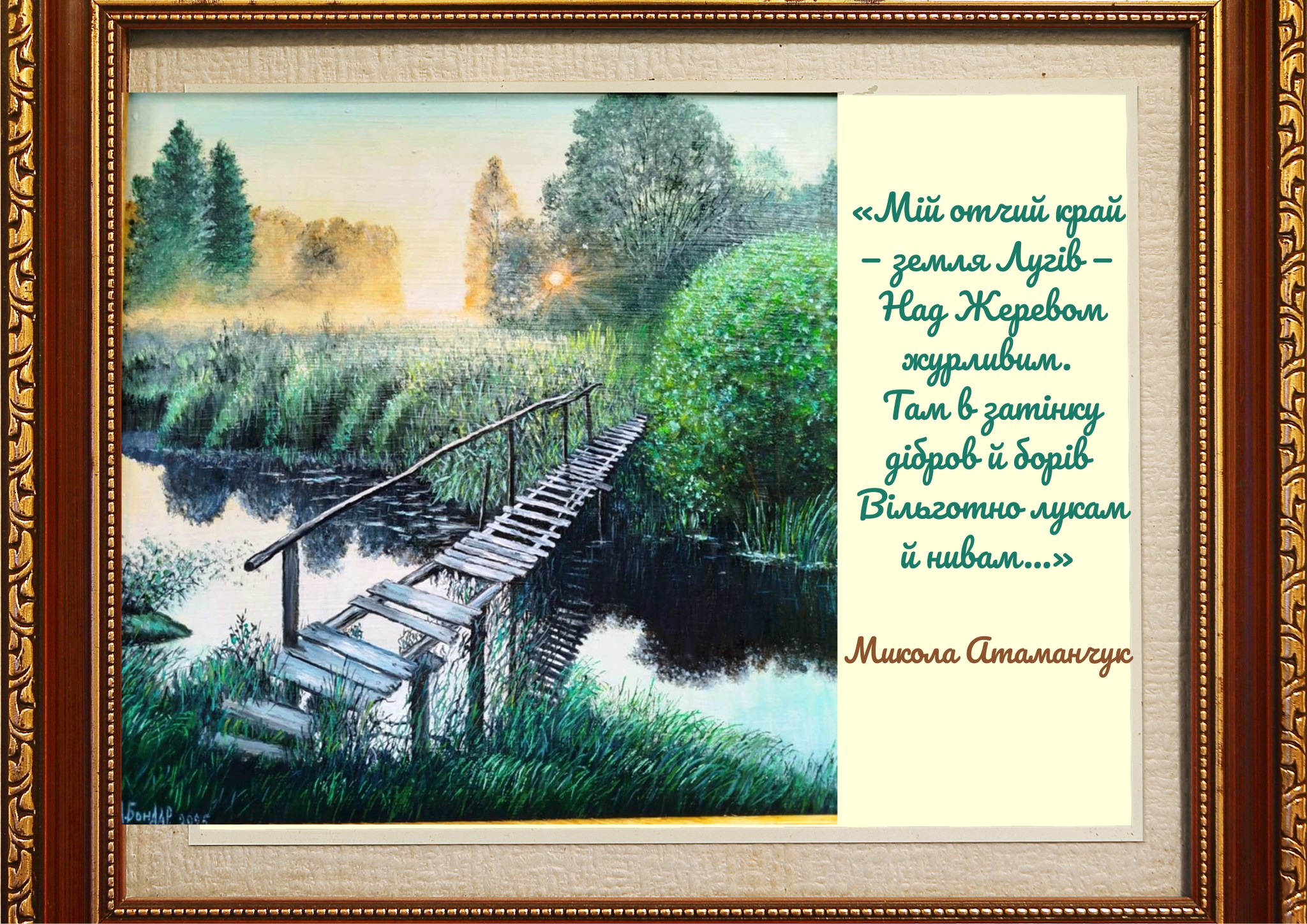 Шановні мешканці та гості Лугинщини! Сердечно вітаємо вас з настанням нового місяця, що відкриває перед нами свіжі можливості та обрії для творчості. З особливою гордістю ми запускаємо нашу довгоочікувану липневу рубрику під назвою «Таланти Лугинщини». Ця ініціатива створена для того, щоб протягом усього місяця щоденно презентувати велич і різноманіття художніх та ремісничих робіт, створених нашими майстрами та майстринями. Кожна публікація супроводжуватиметься яскравими вітальними листівками, що нестимуть у собі частинку душі авторів, а також натхненними цитатами, які додадуть глибини та сенсу. Це чудова можливість відкрити для себе талантові обличчя Лугинщини та зануритися у світ їхніх унікальних витворів. Ми глибоко переконані, що підтримка місцевих талантів є надзвичайно важливою для збереження та розвитку культурної спадщини нашого регіону. Рубрика «Таланти Лугинщини» стане не лише платформою для демонстрації вмінь, а й місцем зустрічі для всіх, хто цінує мистецтво та ручну працю. Вона дозволить широкому загалу познайомитися з унікальними витворами, які народжуються на нашій землі, і відчути гордість за творчий потенціал громади. Це своєрідне вікно у світ мистецтва Лугинщини, що об’єднує людей спільним захопленням та повагою до майстерності. Першою роботою, що відкриває цю чудову серію, є дивовижне творіння Анатолія Бондаря. Його мистецька праця чудово доповнюється поетичними рядками з вірша видатного Миколи Атаманчука, які глибоко резонують з любов’ю до рідного краю: «Мій отчий край — земля Лугів — Над Жеревом журливим. Там в затінку дібров й борів Вільготно лукам й нивам…» Ці слова, сповнені тепла та патріотизму, ідеально підкреслюють красу і неповторність Лугинщини, що є колискою для багатьох поколінь українського таланту. Ця ініціатива має на меті подарувати усім без винятку натхнення, вселити гордість за наш неперевершений рідний край і зміцнити віру в незламну силу українського таланту. Кожен день липня буде приносити нові відкриття, демонструючи багатство внутрішнього світу та майстерність наших земляків. Ми запрошуємо всіх активно долучатися, ділитися публікаціями та поширювати інформацію про талановитих мешканців Лугинщини, адже саме разом ми можемо зробити нашу громаду ще міцнішою та духовно багатшою, підтримуючи справжні таланти Лугинщини. Нехай кожен день цього літа буде наповнений миром, добром та вірою у світле майбутнє. Мирного неба вам і вашим родинам! Адже кожен прояв творчості — це ще один крок до перемоги світла над темрявою, до процвітання та єдності. 💛💙 Все буде Україна! Ми віримо в це і продовжуємо працювати задля цієї мети, підтримуючи українське мистецтво та культуру. Ми з нетерпінням чекаємо на ваші відгуки та сподіваємось, що «Таланти Лугинщини» стануть улюбленою рубрикою для багатьох. Цей проєкт – яскраве свідчення життєздатності та невичерпності наших місцевих талантів.