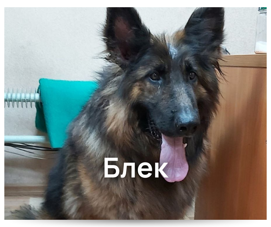 🐶 Блек — це дорослий пес великого розміру, який нагадує німецьку вівчарку. Йому 8 років, але він залишається добрим, лагідним і розумним собакою, який мріє про відповідальних господарів. Його характер робить його ідеальним компаньйоном.