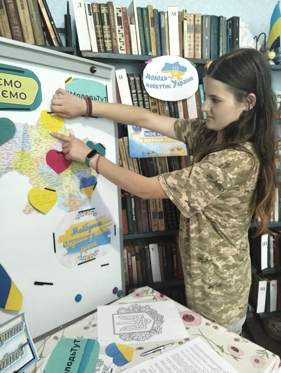 Символічні побажання можна було знайти на карті України. Так, юні громадяни нашої держави створювала яскраву картину мрій і сподівань. Мапа стала своєрідним оберегом, наповненим теплими словами та щирими думками молодих людей.