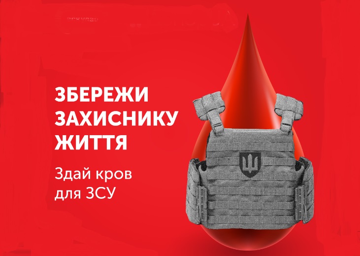 Здай кров – врятуй життя! Для Збройних Сил України. Для нашої рідної України. Для кожного з нас!