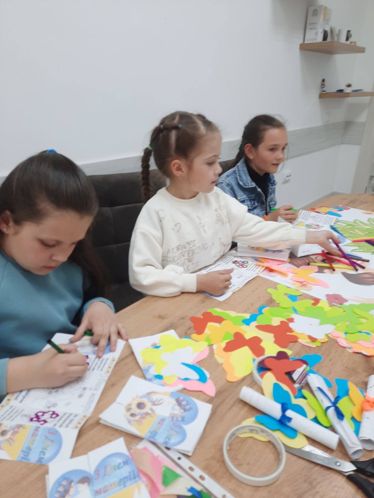 🎨🌸 Діти з великим захопленням створювали власноручні вітальні листівки. Кожна листівка містила теплі слова: “З Днем матері, моя люба!” Ці дитячі творіння стали проявом щирої любові, турботи та тепла, які діти відчувають до своїх мам.