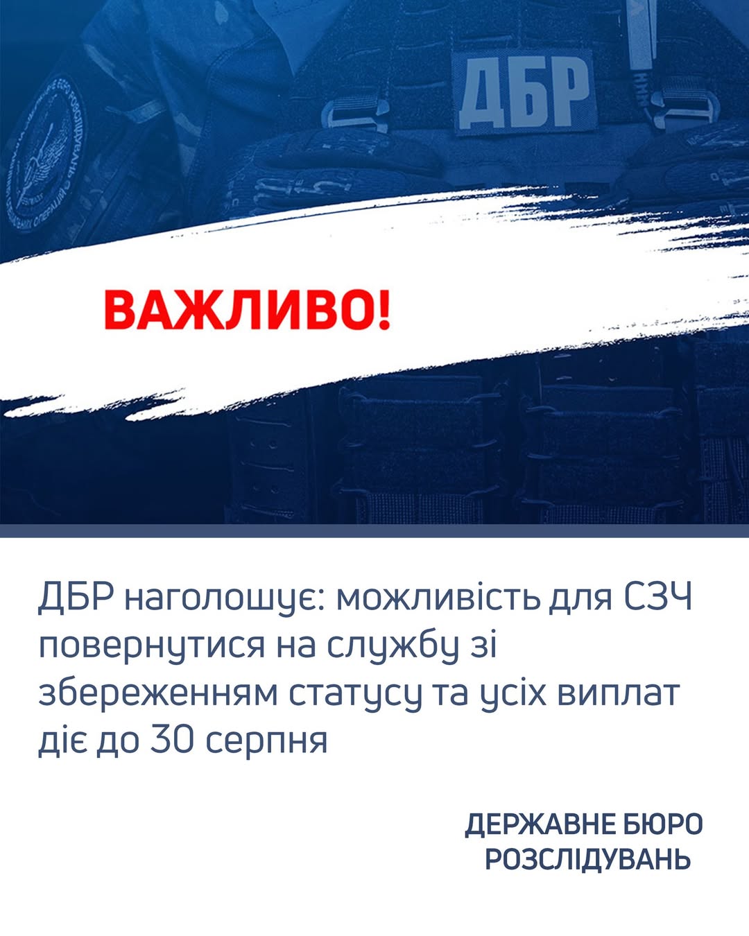 👉 Детальніше за посиланням https://dbr.gov.ua/news/dbr-nagoloshue-mozhlivist-dlya-szch-povernutisya-na-sluzhbu-zi-zberezhennyam-statusu-ta-usih-viplat-die-do-30-serpnya