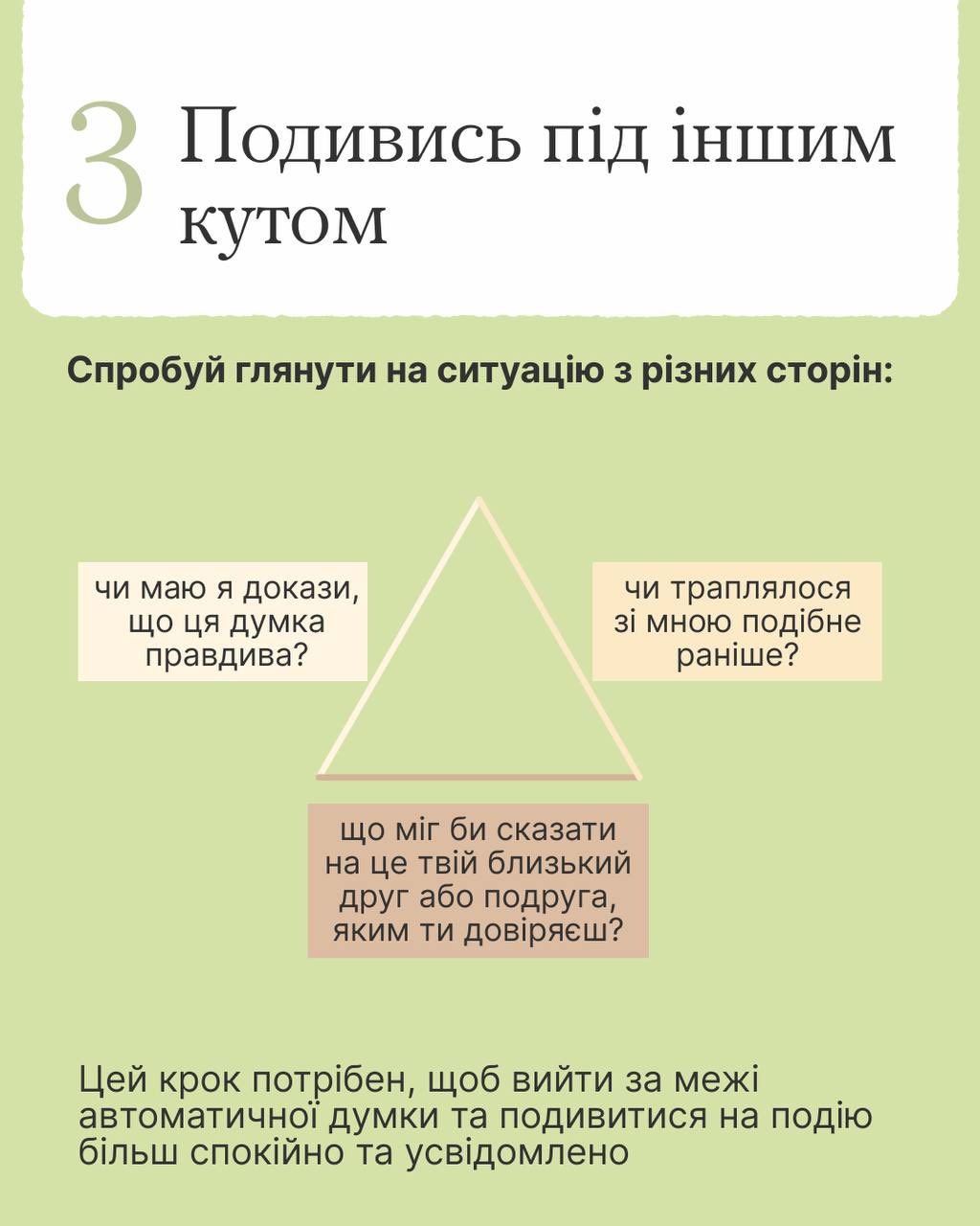 Програма «Ти як?» розробила спеціальні інструменти, які допоможуть вам у цьому процесі. Зокрема, пропонується техніка самоаналізу, яка включає кілька простих, але дієвих кроків. По-перше, важливо навчитися розпізнавати свої автоматичні думки. Вони часто є короткими, швидкими та емоційно забарвленими.