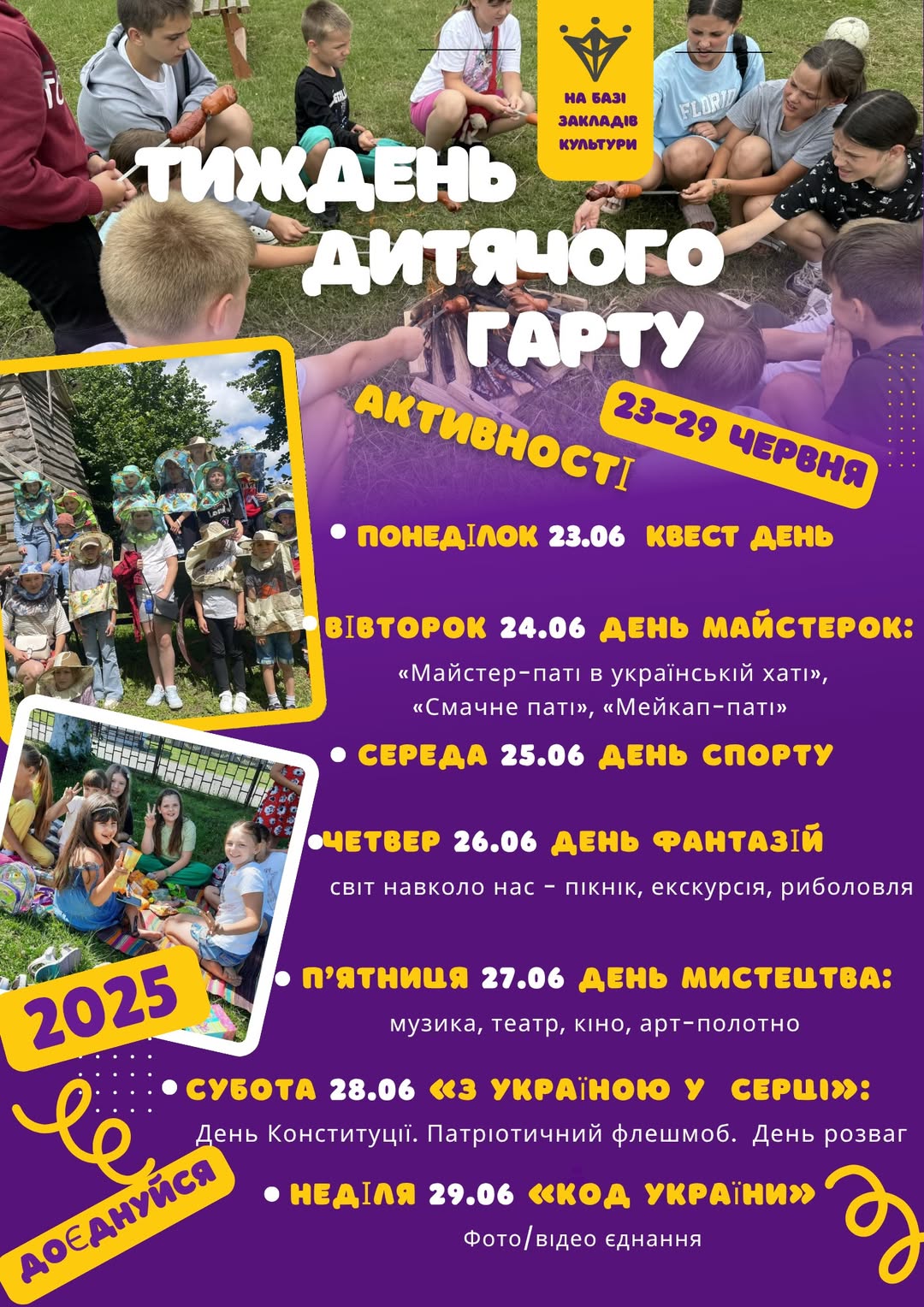 🗓 З 23 по 29 червня запрошуємо дітей долучитися до тематичних днів, сповнених: