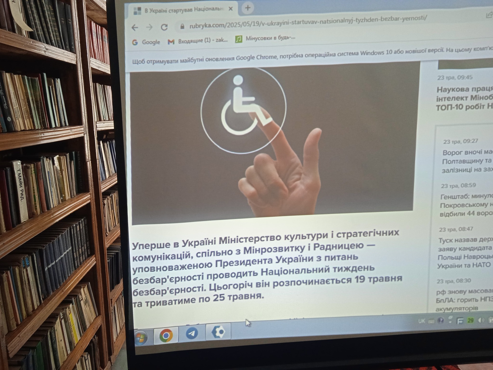 В Україні вперше проводиться Національний тиждень безбар’єрності, ініційований Міністерством культури та інформаційної політики. Починаючи з 19 травня, цей тиждень має на меті сприяти формуванню інклюзивного суспільства. Основна мета – підвищення обізнаності про важливість безбар’єрності та популяризація рівних можливостей для кожного громадянина.