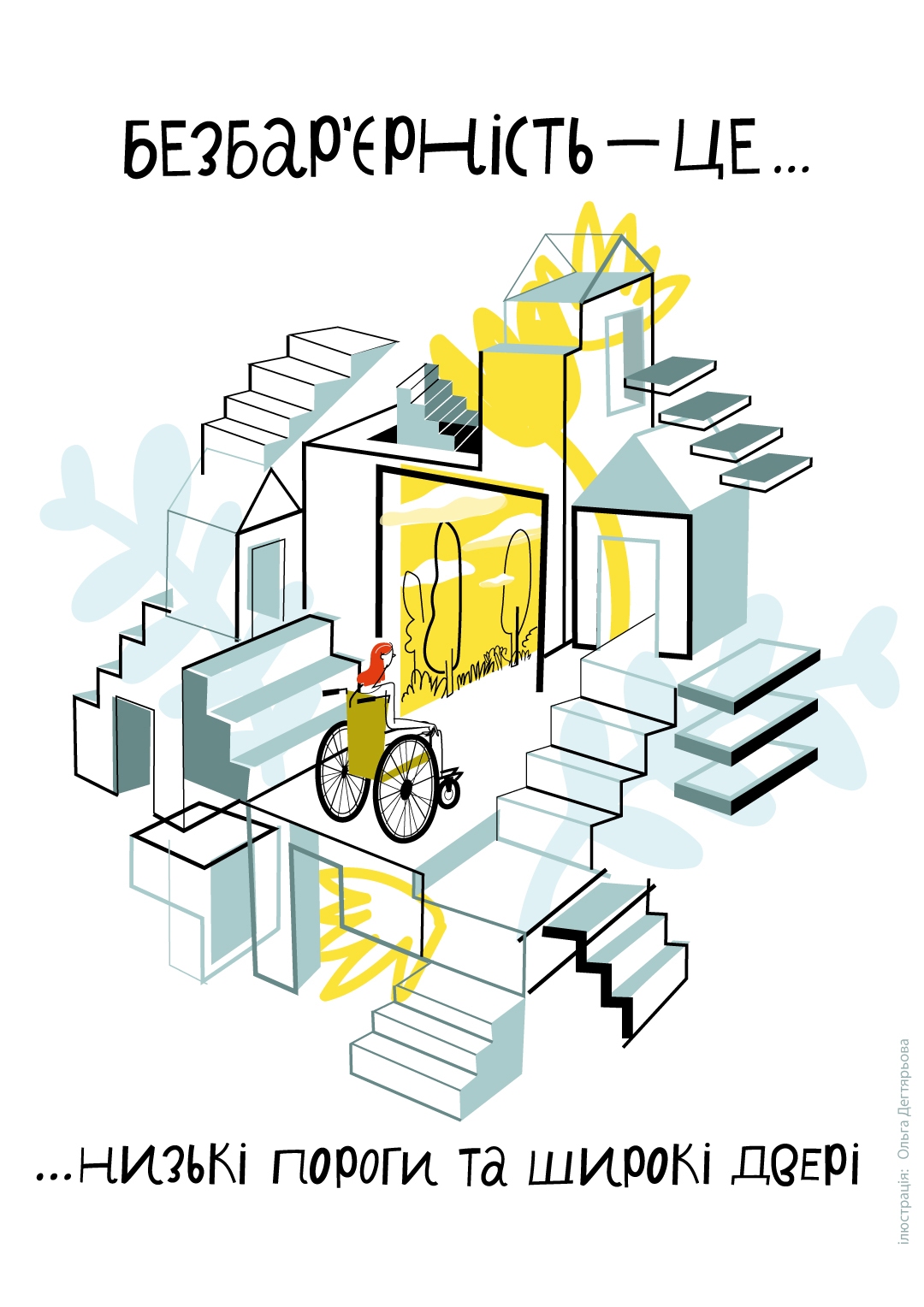 Безбар’єрність – це не тільки пандуси та ліфти. Це можливість для кожної людини вільно пересуватися, здобувати освіту, знаходити роботу та подорожувати, незалежно від наявності інвалідності, віку, статі чи інших індивідуальних особливостей. Це створення комфортного середовища, де поважають потреби кожного.