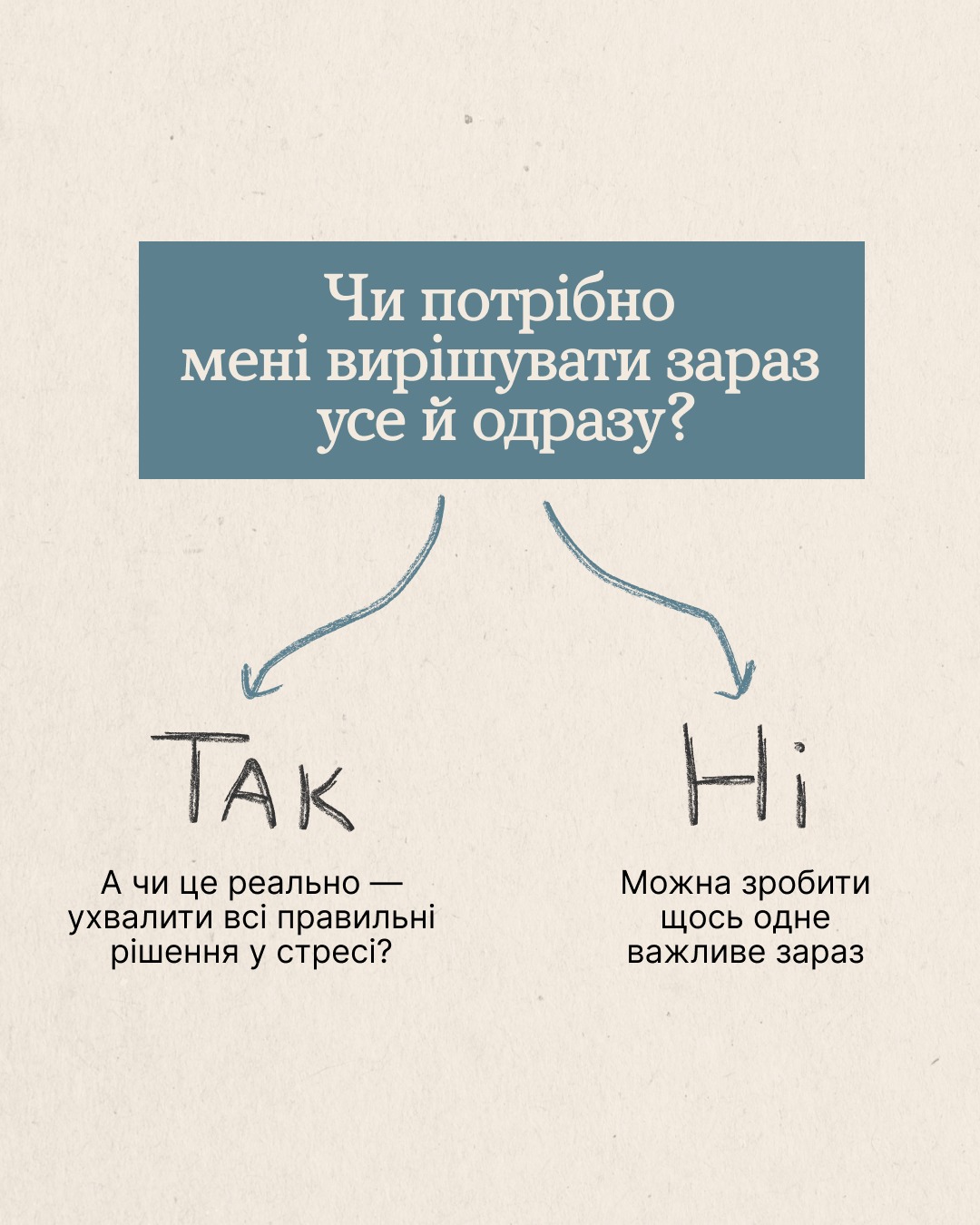 Адже інколи не така страшна ситуація, як її може малювати наш мозок. А якщо додати до автоматичних думок ще й неперевірені новини, чутки, нагнітання, високий рівень тривоги тобі гарантовано 👌
