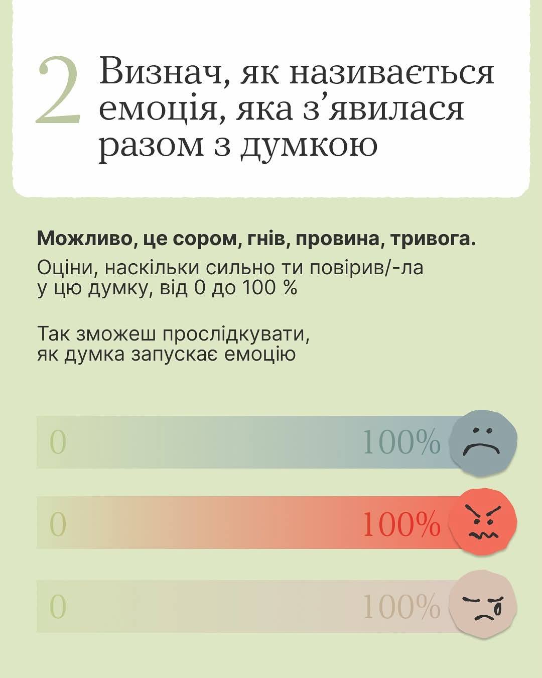 - Зменшувати емоційний вплив: зрозумівши, що думка не є фактом, ви зможете знизити її негативний вплив на ваш стан.