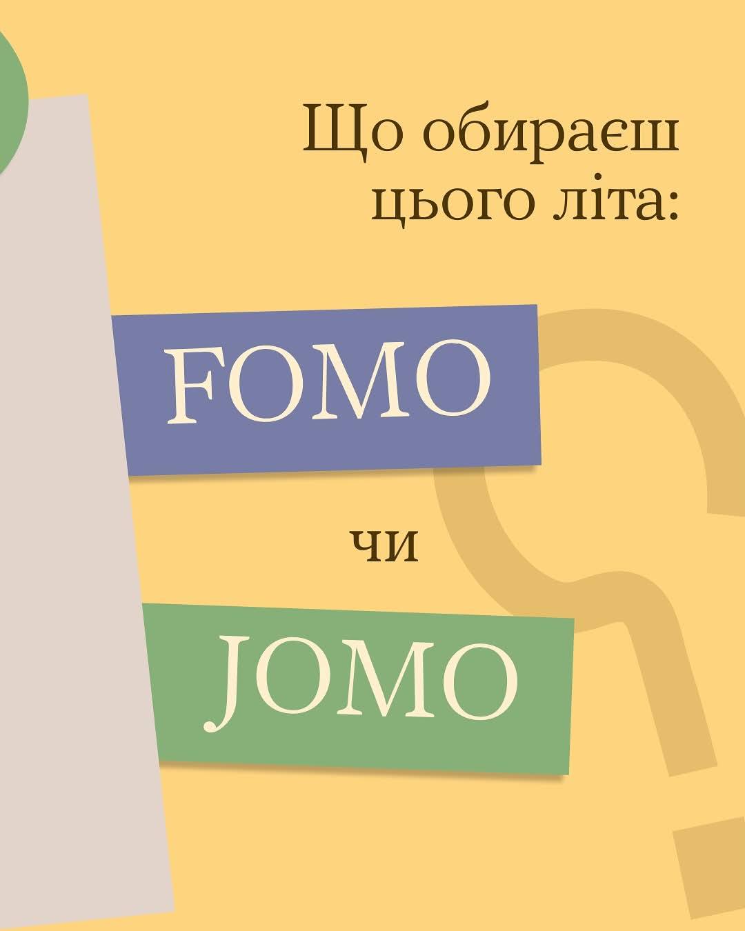 З англійської Joy of Missing out (JOMO) вчить отримувати задоволення від того, що ти свідомо відмовляєшся від можливостей на користь власному комфорту 😌