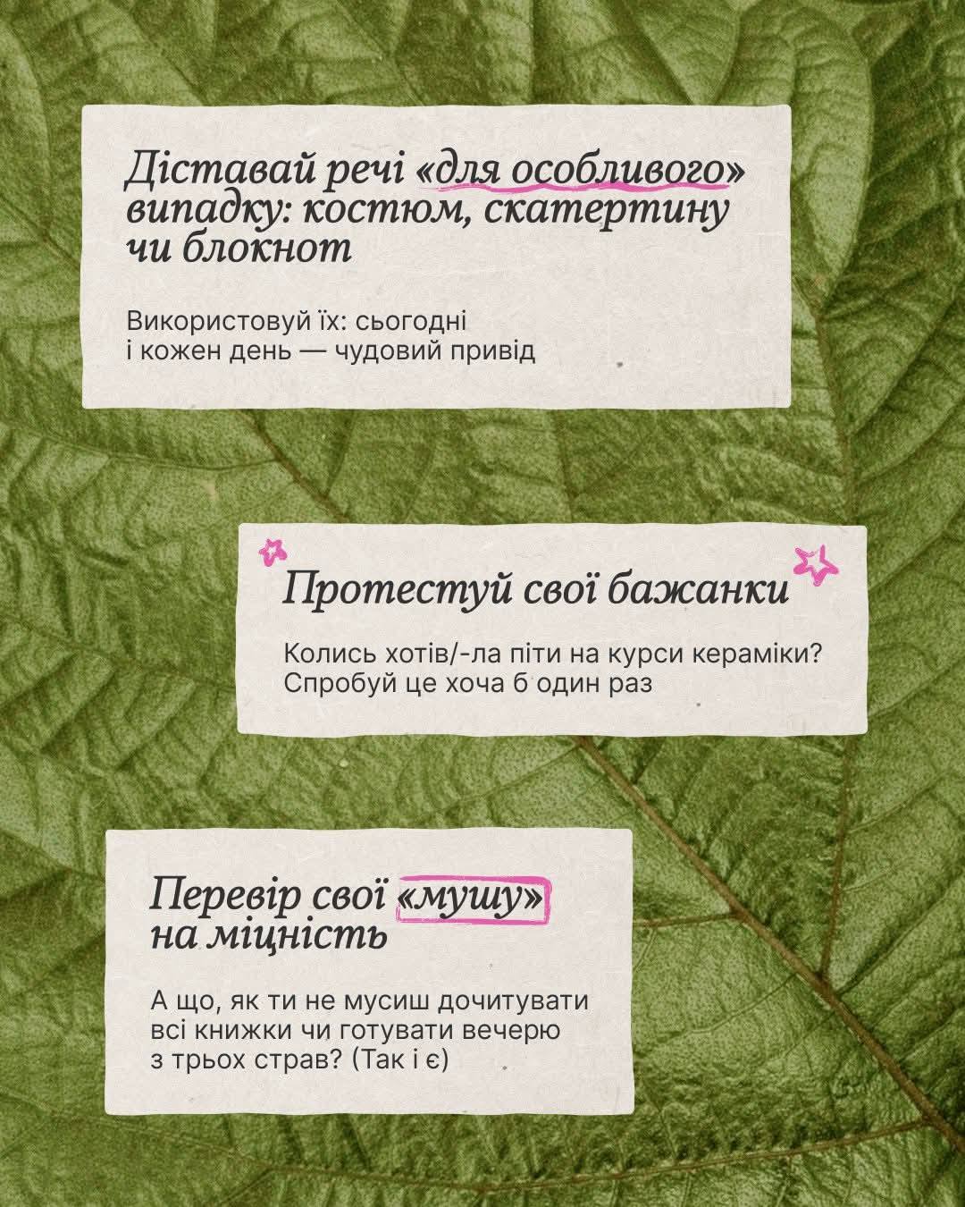 Гортай карусель і спробуй щось із цього вже сьогодні. Який пункт обереш собі? Розкажи у коментарях 👇