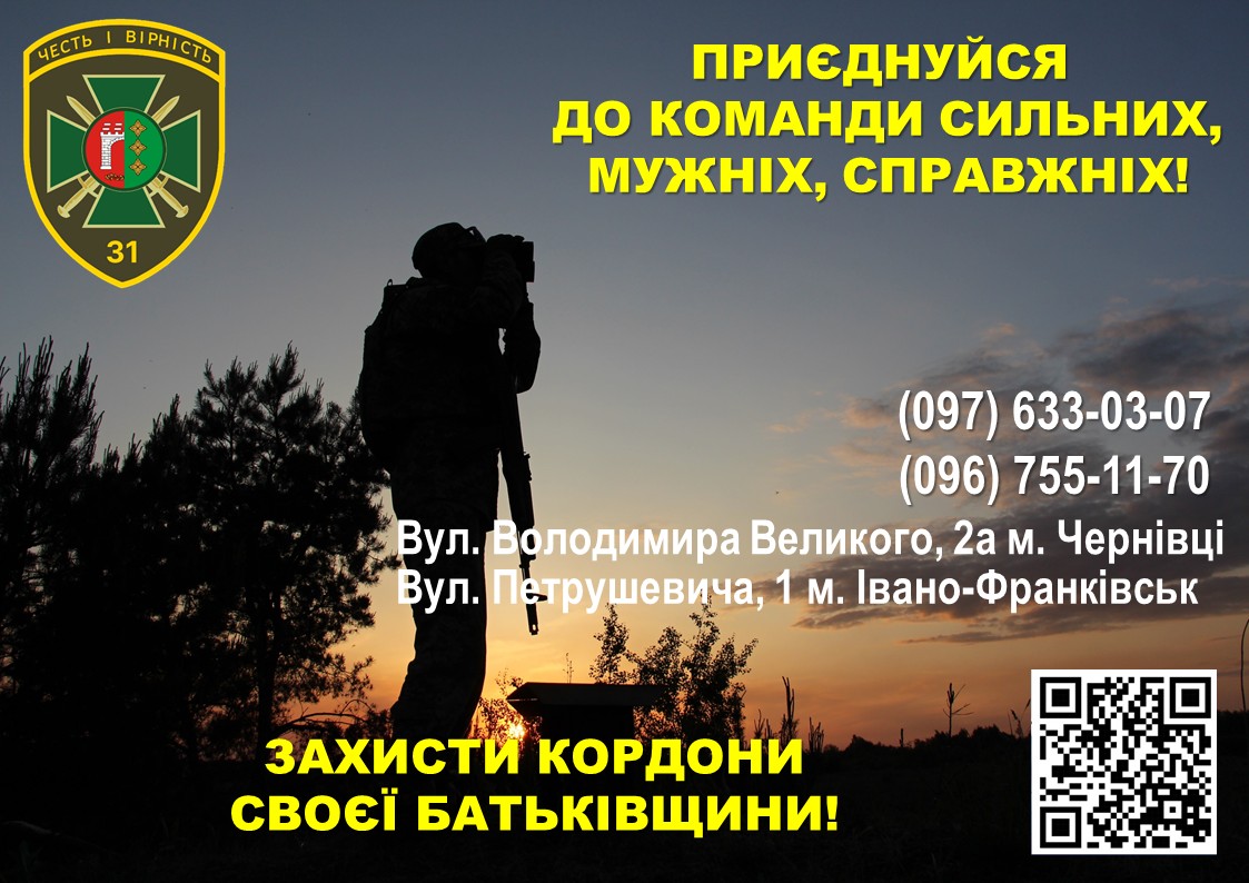 Чернівецький прикордонний загін оголошує набір вмотивованих та цілеспрямованих чоловіків на вакантні посади в підрозділах охорони державного кордону. Це унікальна можливість зробити свій внесок у безпеку країни та розпочати відповідальну кар’єру.