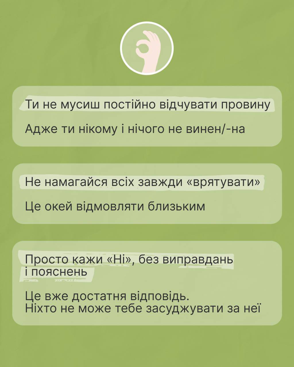- Не бійтеся сказати «ні»: Відмова є абсолютно нормальним правом.