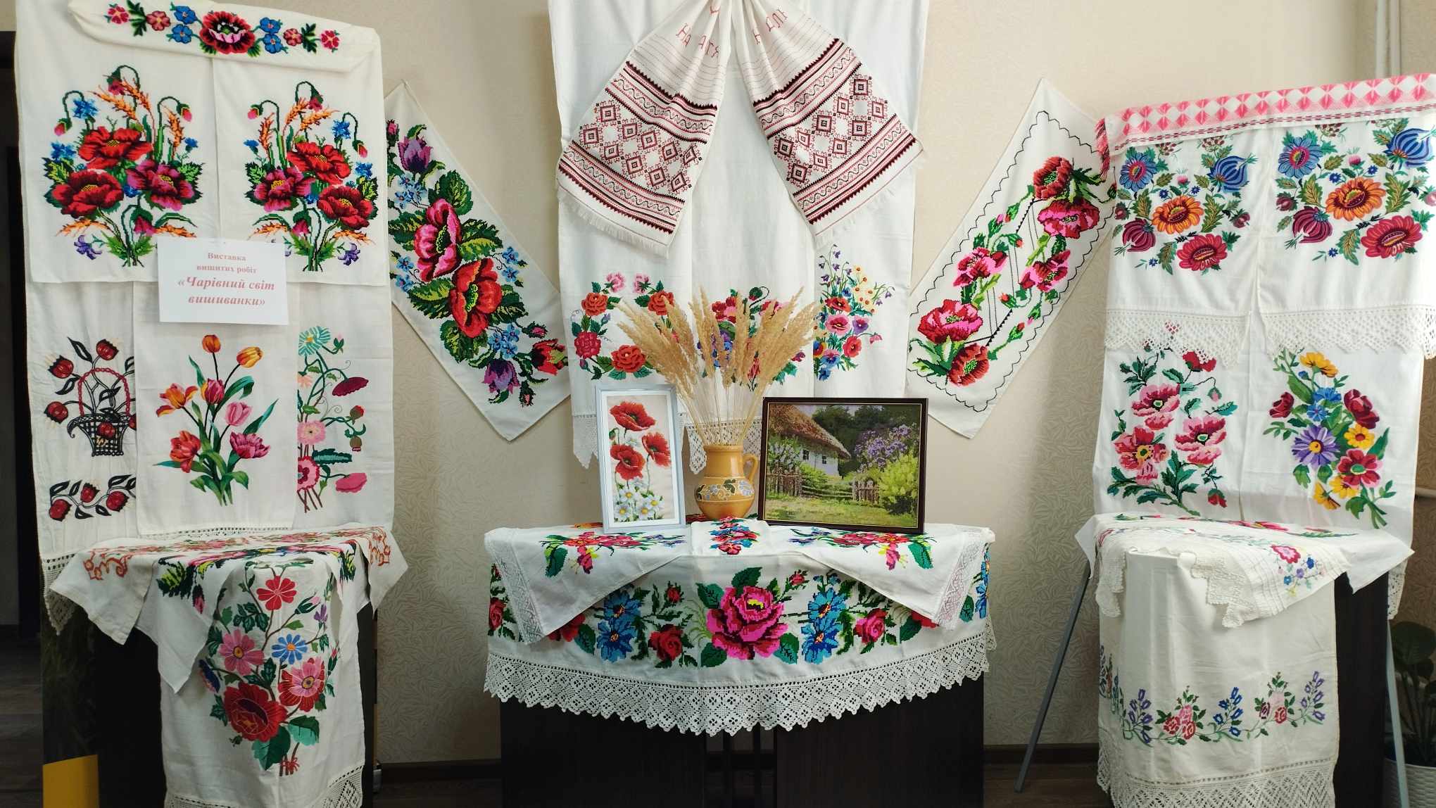 На виставці були представлені різноманітні вироби: від традиційних рушників та серветок до сучасних картин, кожен з яких розповідав свою унікальну історію. Відвідувачі мали змогу не лише насолодитися красою української вишивки, але й відчути духовний зв’язок з предками, чия мудрість та майстерність передаються з покоління в покоління.