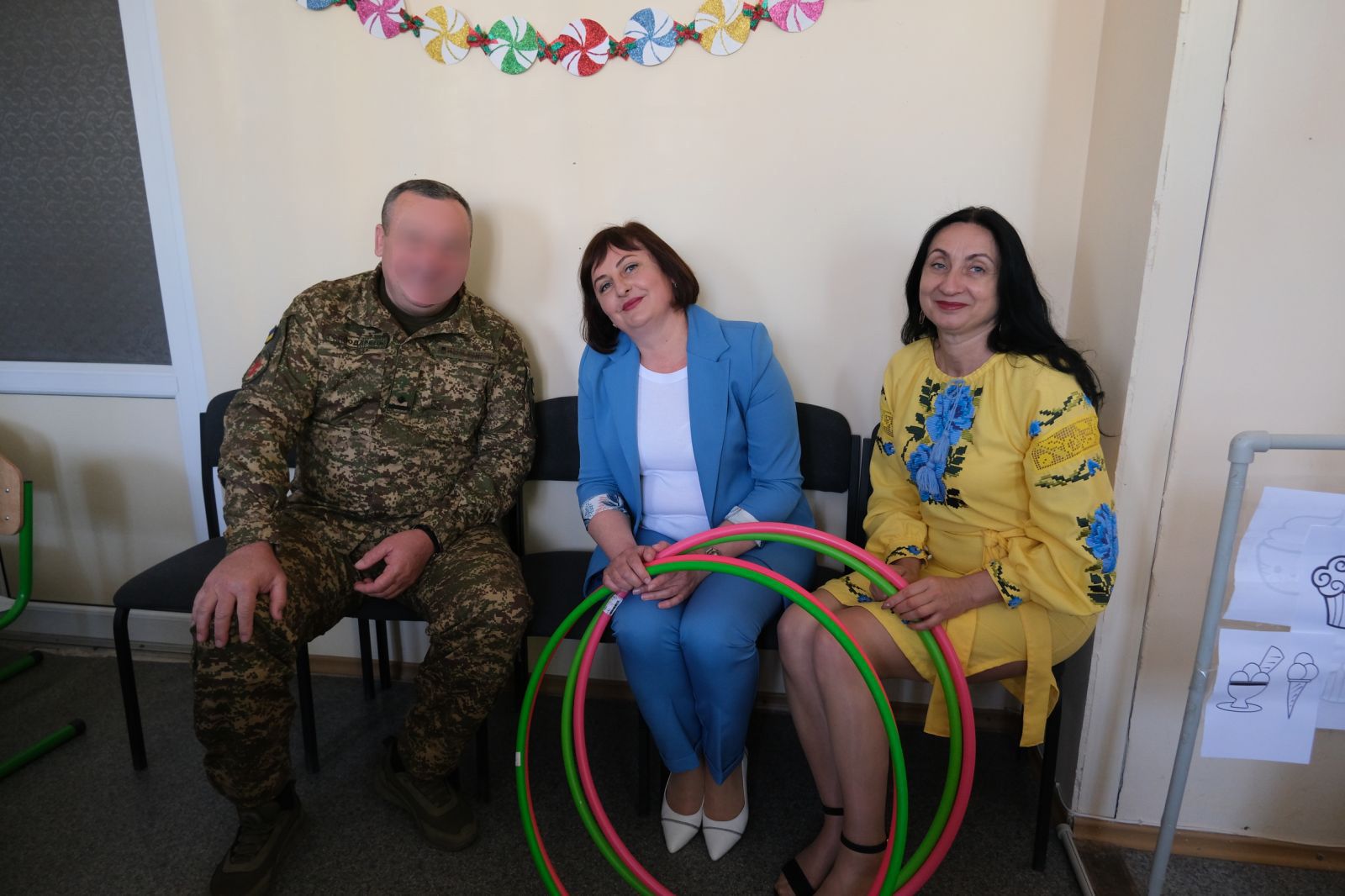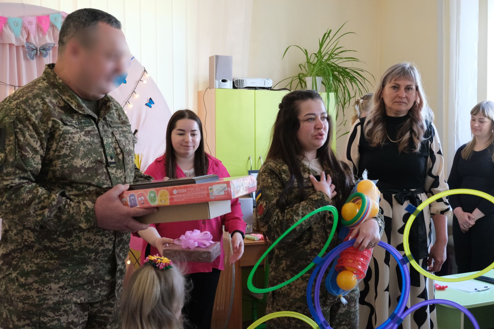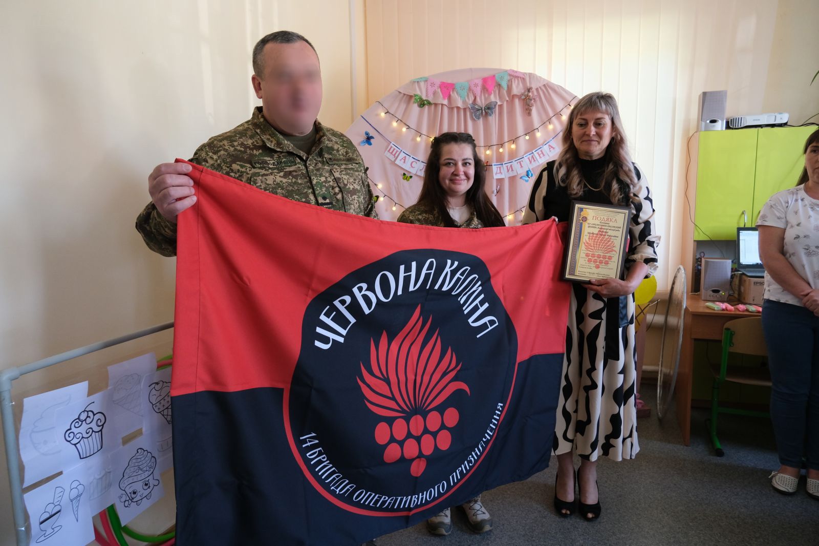 Директор центру, Лариса Щербанюк, розпочала свято привітанням діток із початком літніх канікул. Рухливий танок одразу захопив увагу малечі. Захисники з військового формування “Червона калина” тепло привітали діток та їх мам, подарувавши цікаві ігри. Микола Вікторович висловив подяку працівникам Центру від військового командира та подарував прапор підрозділу “Червона калина” в знак вдячності за підтримку.