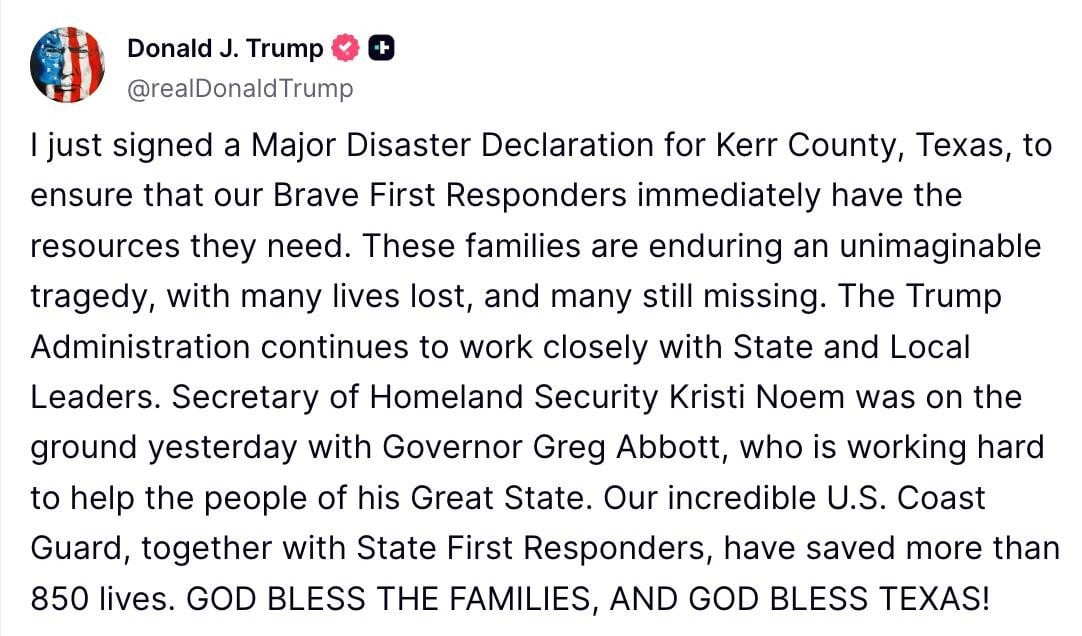 Берегова охорона, спільно з державними службами швидкого реагування, вже врятувала понад 850 життів, демонструючи високий професіоналізм та самовідданість. Ці героїчні дії є свідченням незламного духу перед обличчям катастрофи. Зі свого боку, Трамп висловив слова підтримки та молитви за всіх постраждалих: «БОЖЕ, БЛАГОСЛОВИ СІМ’Ї, І БОЖЕ, БЛАГОСЛОВИ ТЕХАС!», підкреслюючи масштаб трагедії та потребу в солідарності.