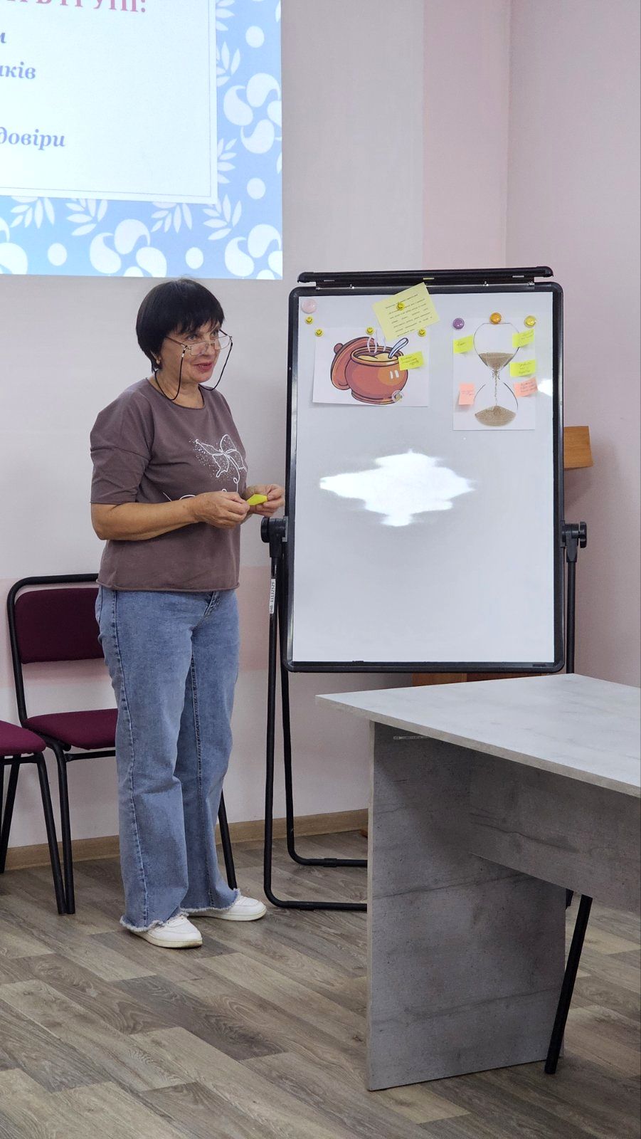 Ключовим моментом засідання став тренінг «Соціально-психологічний мікроклімат у колективі: шляхи оптимізації», який провела керівник спільноти, вихователь-методист ЗДО №8 «Пролісок» Ольга Муль. Тренінг був спрямований на згуртування педагогічного колективу, розвиток комунікативних навичок, підвищення емоційної стійкості та впевненості у власних силах, а також на виховання доброзичливого ставлення до колег. Для досягнення цих цілей було застосовано низку ефективних вправ, зокрема: «Рецепт ефективної роботи або гарного дня», «Хто ви сьогодні» та «Театр: п’єса, яка задовольнить усіх». Ці інтерактивні методики допомогли покращити атмосферу в групі, активізувати учасників та налагодити творчу взаємодію.