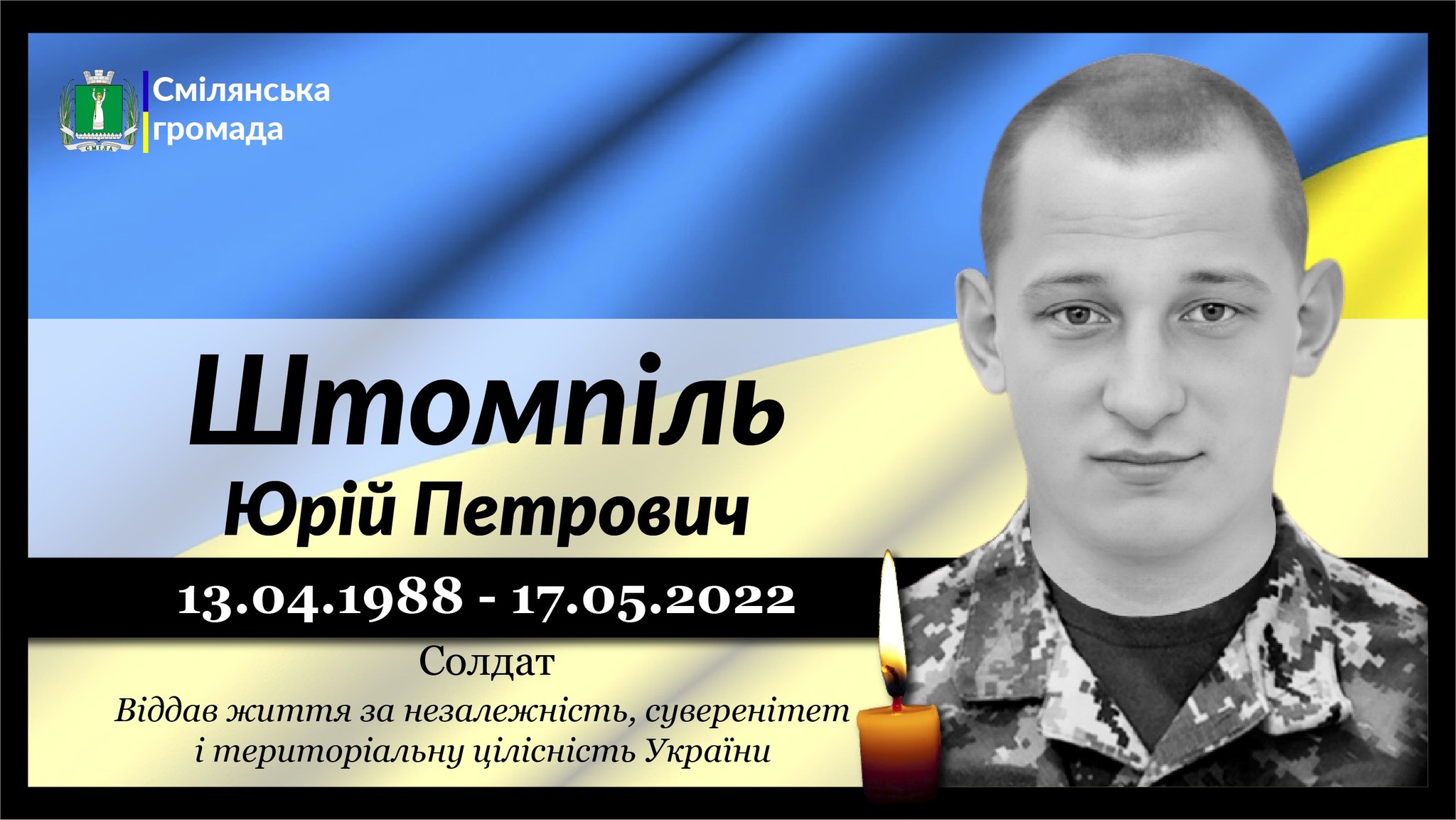 🕯Третя річниця…Пам’ятаємо… Героя України, Штомпіль Юрія Петровича, чиє життя обірвалося 17 травня 2022 року. Він назавжди залишиться в нашій пам’яті як символ мужності та відданості.