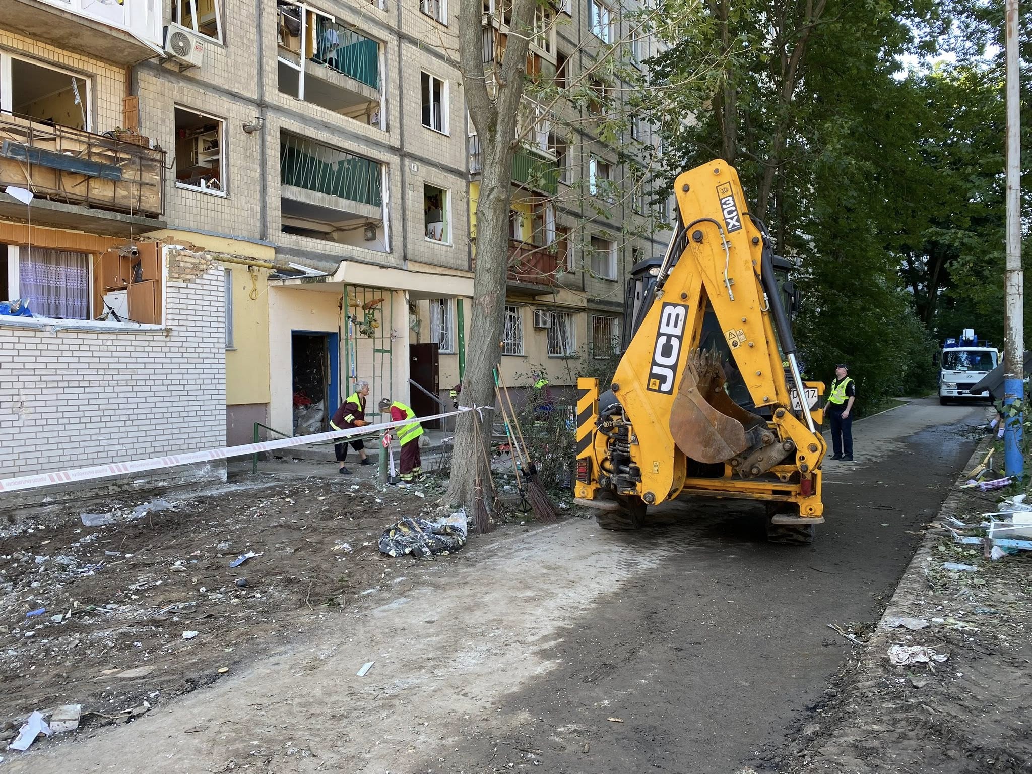 Третій день поспіль комунальні служби Святошинського району невпинно працюють на місці влучання. Спільними зусиллями з представниками МВС проводиться цілодобова робота для якнайшвидшої ліквідації наслідків.