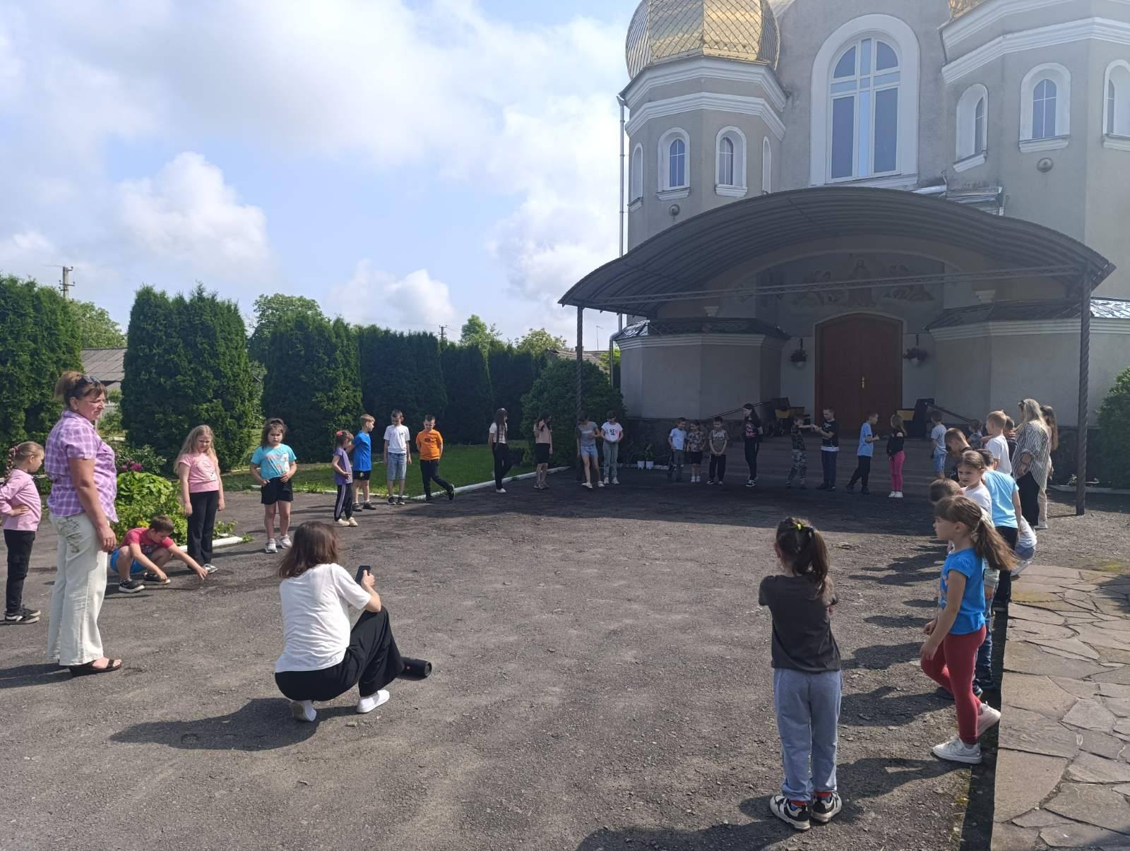 Для молодших учасників табору було організовано пізнавальну екскурсію до місцевої старовинної церкви. Діти з цікавістю знайомилися з історією храму, його унікальною архітектурою та глибокою символікою. Після екскурсії на території церкви відбулися активні ігри, запальні банси, танці та інші розваги, що наповнили день радістю та позитивними емоціями. Важливо, щоб діти мали можливість не тільки навчатися, а й весело проводити час разом.