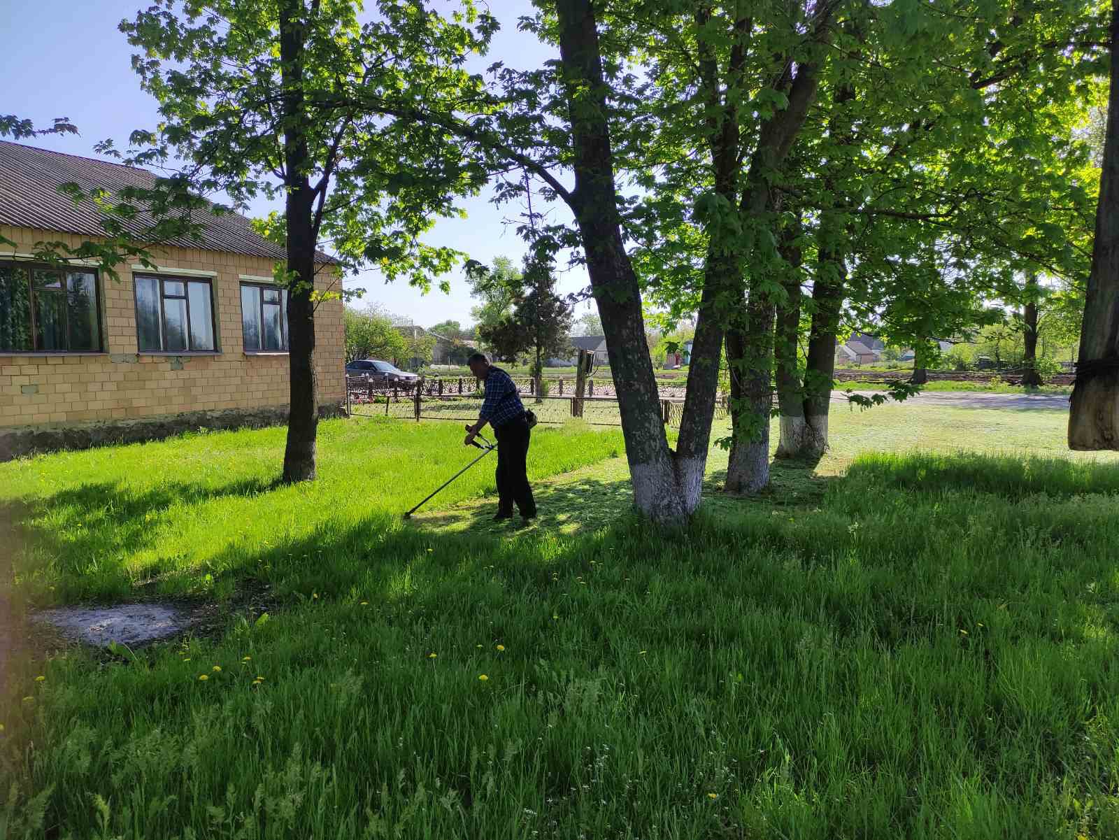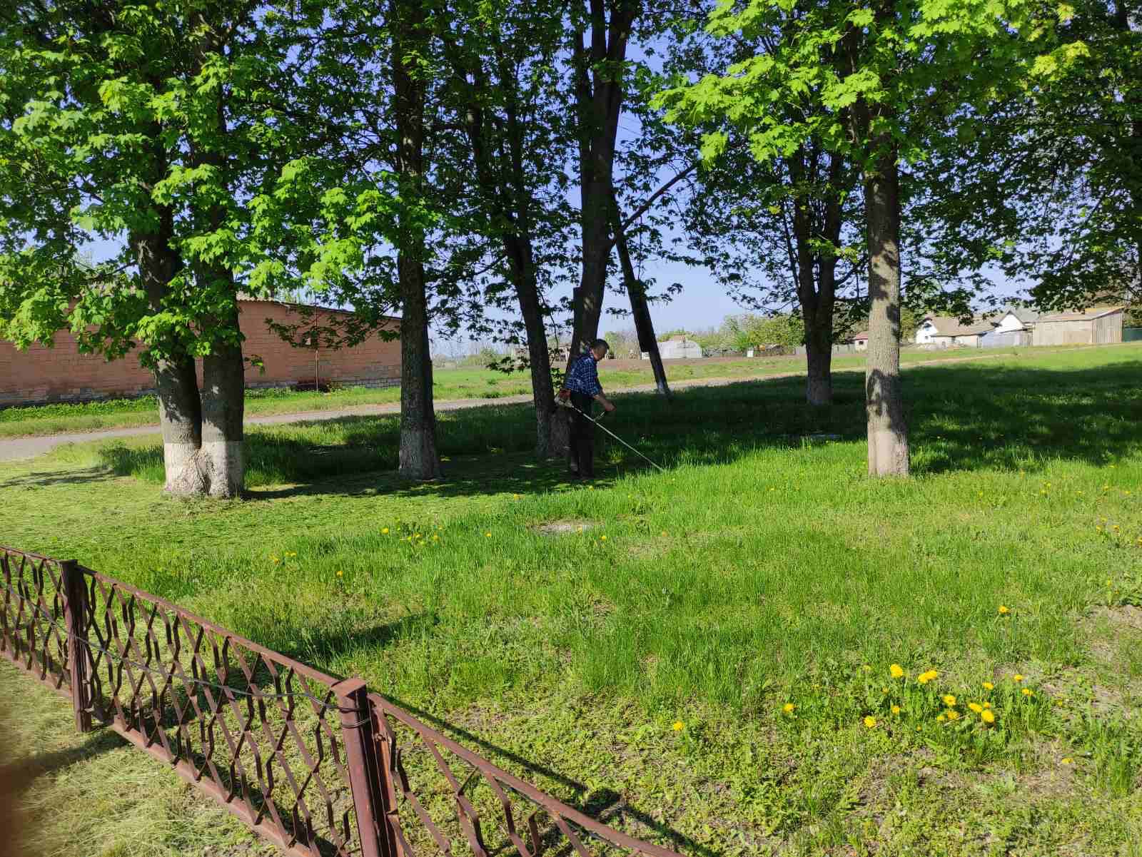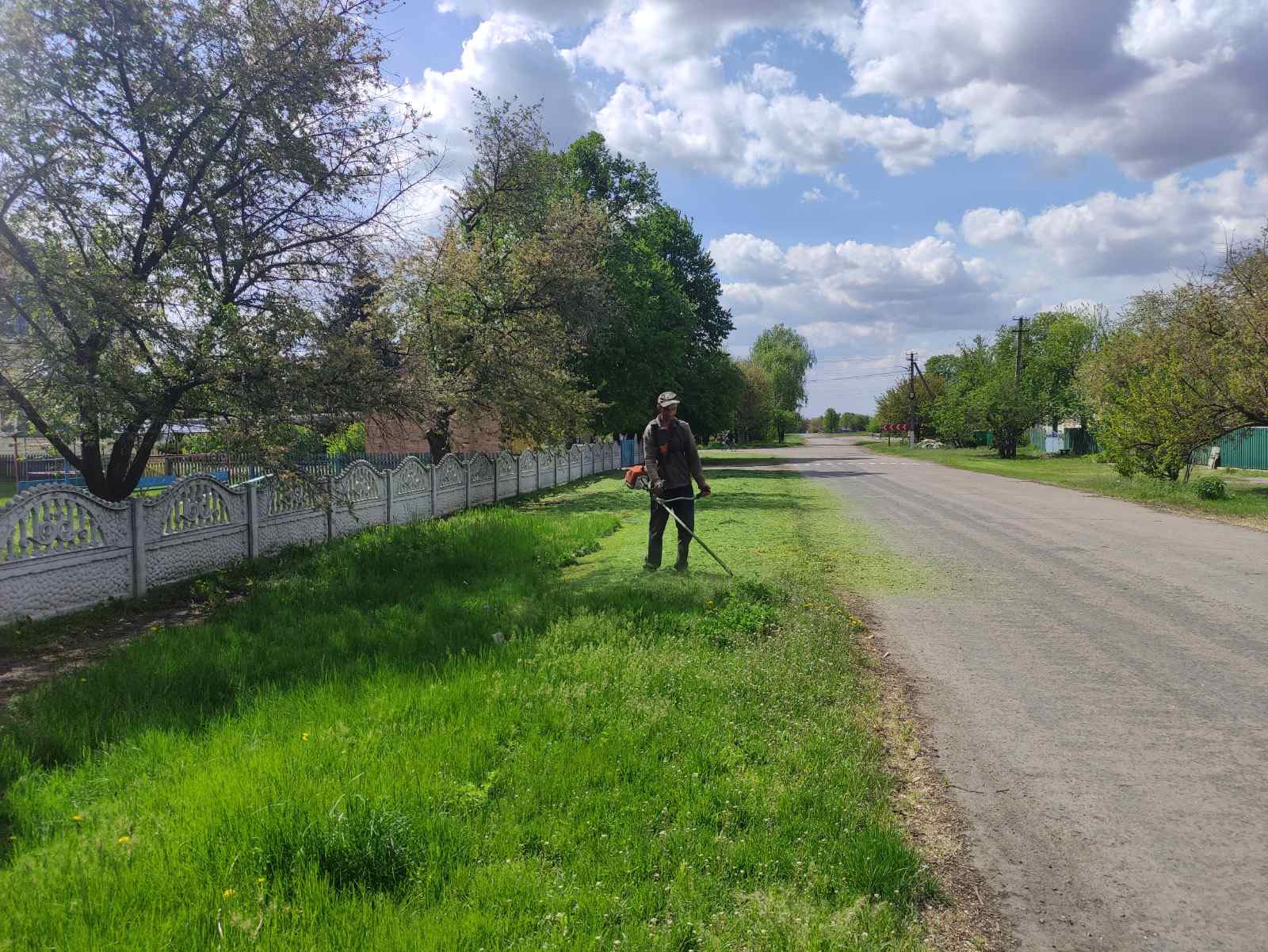🟢 У Шишаках працівники КП «Добробут» подбали про чистоту та порядок — викосили траву на території адмінбудівлі старостату, а також у сільському парку.