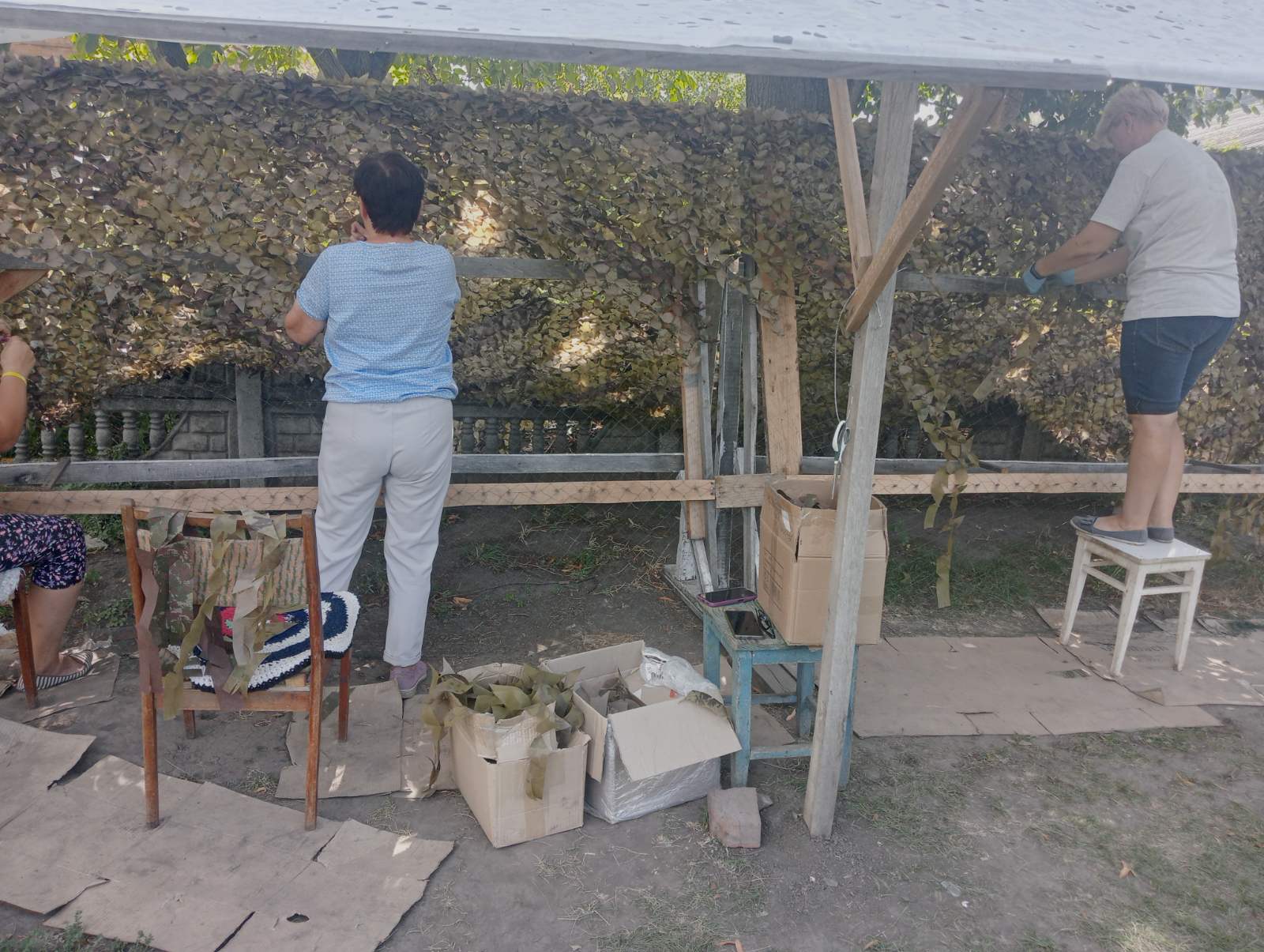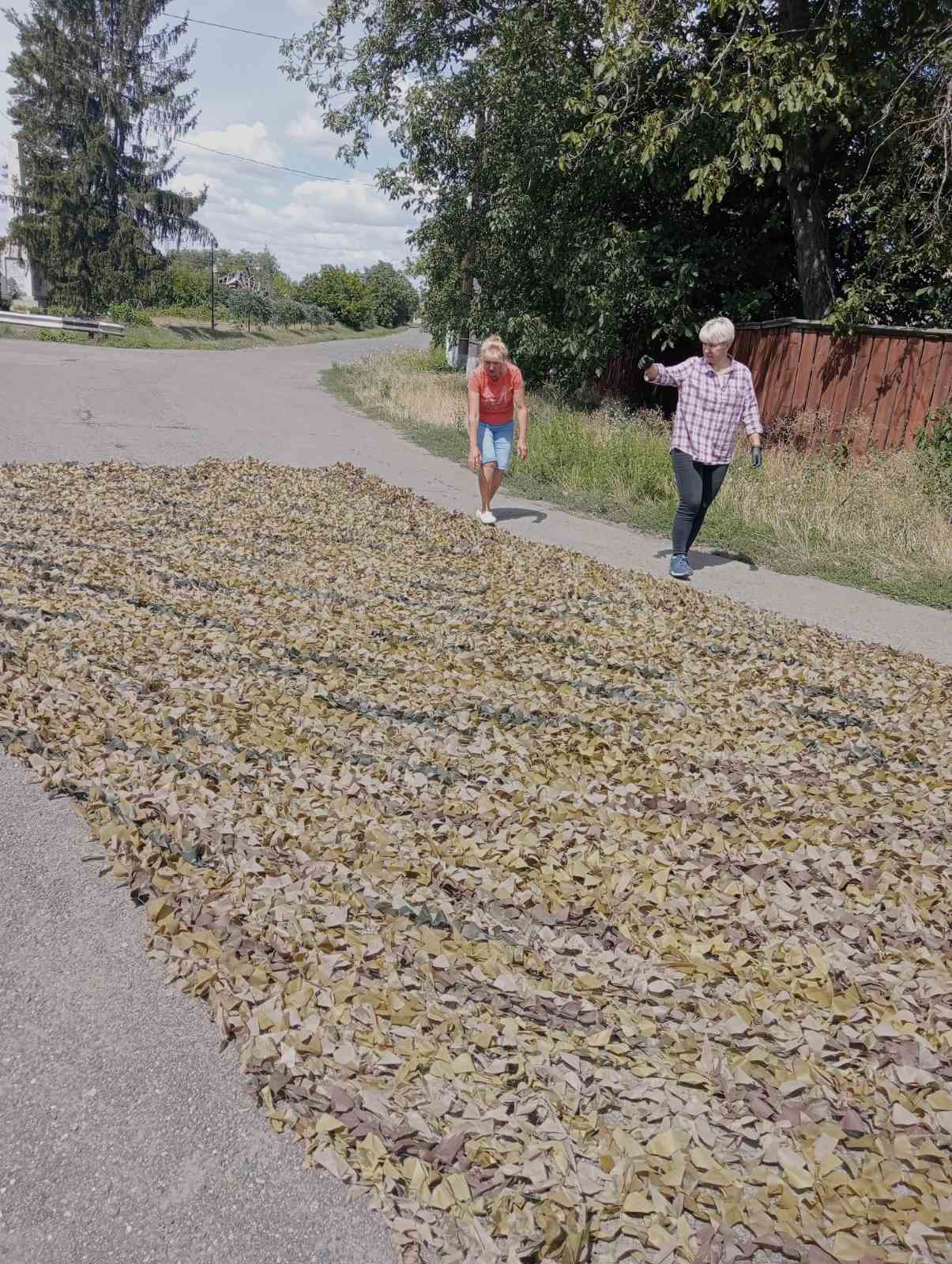 Наразі основна увага приділяється виготовленню сіток сезонного осіннього забарвлення, що відповідає умовам місцевості. Крім того, у місті Городище є в наявності сітки зеленого забарвлення розміром 6х6 метрів, готові до відправки нашим захисникам.