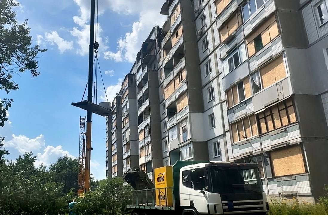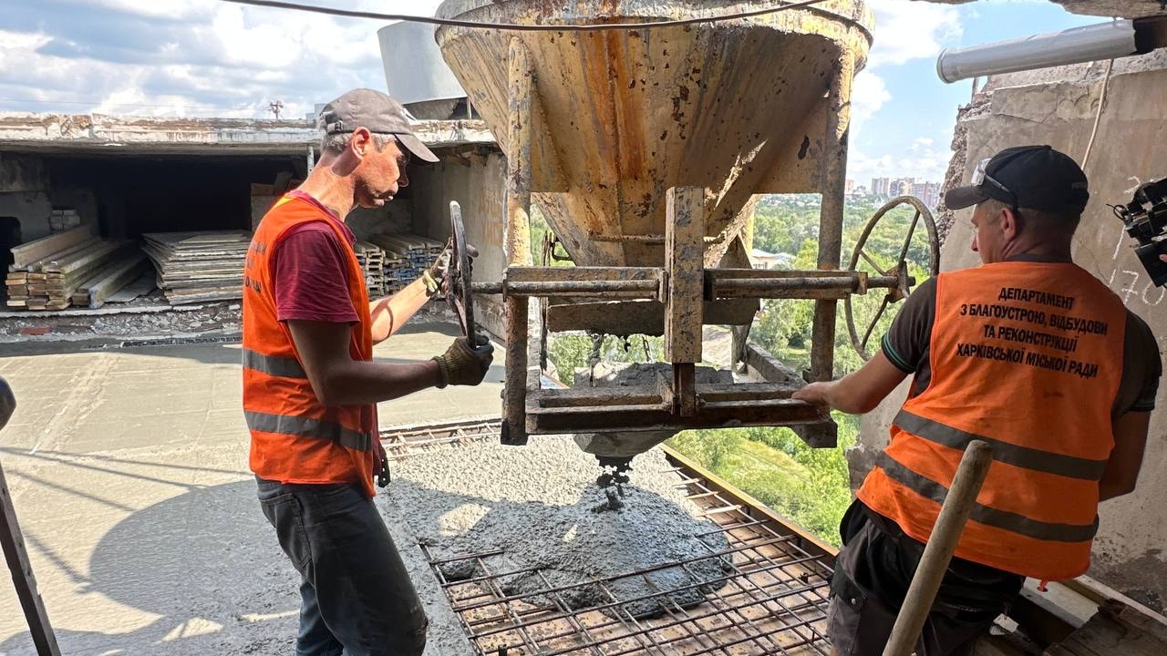 Як повідомили в Департаменті з благоустрою, відбудови та реконструкції, фахівці вже демонтували залишки зруйнованих конструкцій і відновили внутрішні стіни у двох квартирах на дев’ятому поверсі. Зараз тривають роботи з відновлення залізобетонного перекриття.