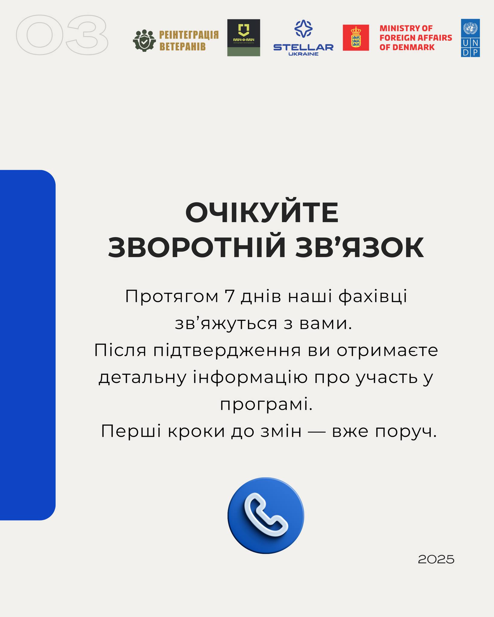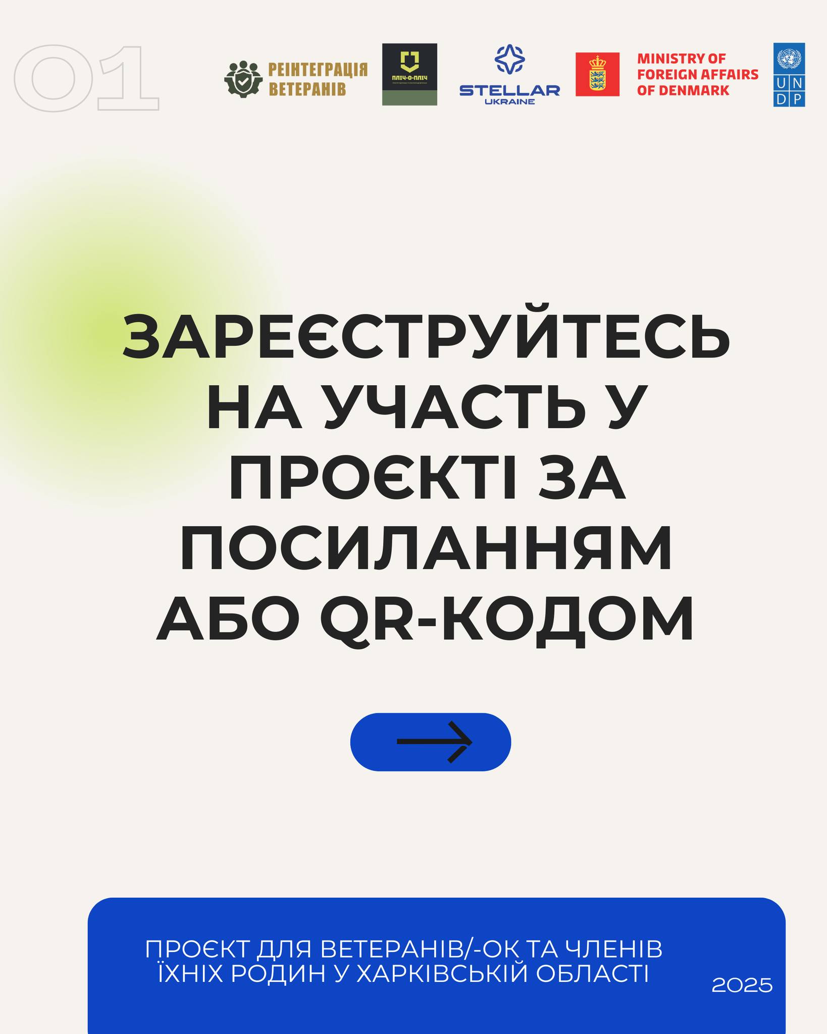 Ініціативу «Розвиток екосистеми (ре)інтеграції ветеранів/-ок Харківщини в громаду та підтримки членів їхніх сімей» впроваджує БФ «Зоряна Україна» за сприяння Програми розвитку ООН (ПРООН) в Україні за фінансової підтримки Уряду Данії. Партнером ініціативи також став КЗ «Ветеранський простір «Пліч-о-пліч».