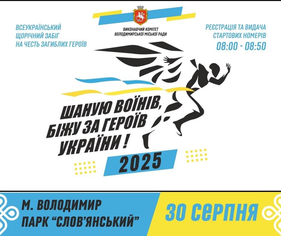 Захід відбудеться 30 серпня 2025 року в місті Володимир, на території парку «Слов’янський». Ми запрошуємо всіх бажаючих взяти участь у цьому значущому заході, що поєднує спорт, патріотизм та вшанування пам’яті.