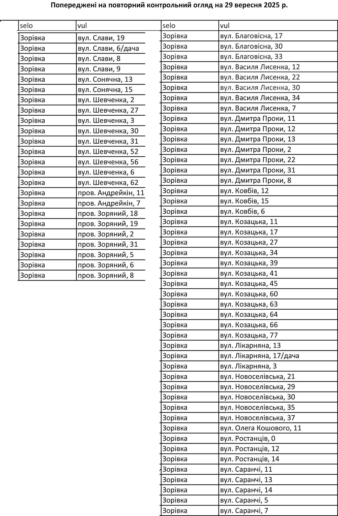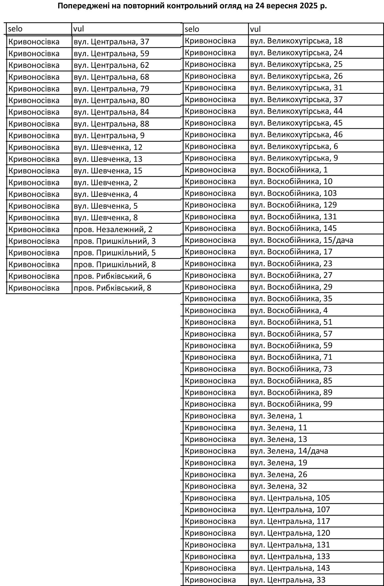 Планові перевірки будуть проводитись у таких населених пунктах: