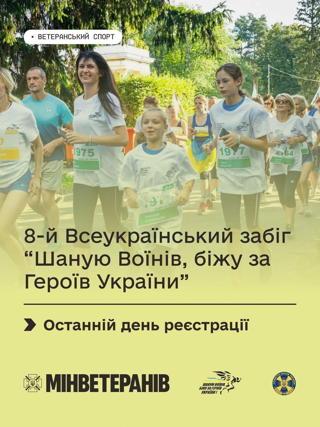 Увага❗Вже сьогодні завершується реєстрація на 8-й Всеукраїнський забіг “Шаную Воїнів, біжу за Героїв України”