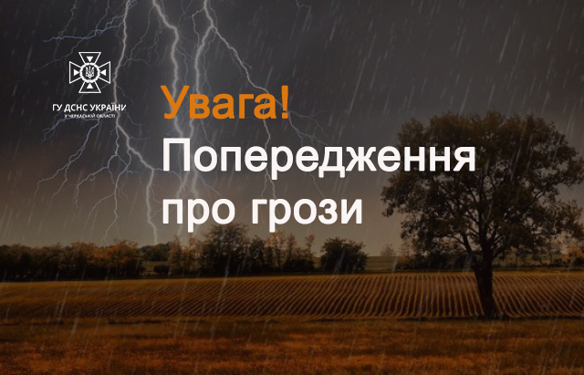 Попередження про грози в Черкаській області та місті Черкаси