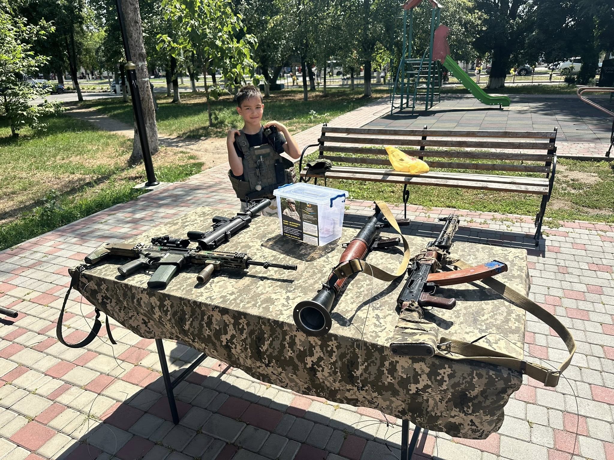 Прямо зараз на території Центрального парку проходить виставка військового спорядження та техніки, а також працює польова кухня.