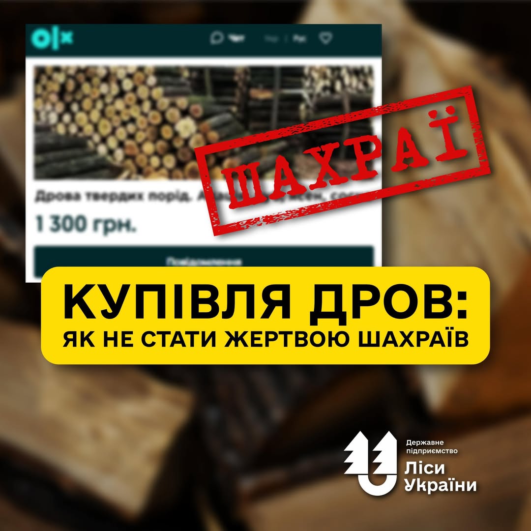 На гарячу лінію державного підприємства “Ліси України” надходить велика кількість скарг щодо випадків шахрайства, пов’язаних із продажем деревини. На популярних інтернет-майданчиках, таких як OLX, Prom.ua та інших, активно розміщуються оголошення про продаж дров. На жаль, деякі особи, які не мають жодного стосунку до ДП “Ліси України”, видають себе за представників підприємства. Вони пропонують покупцям перерахувати кошти за деревину безпосередньо на банківські картки.