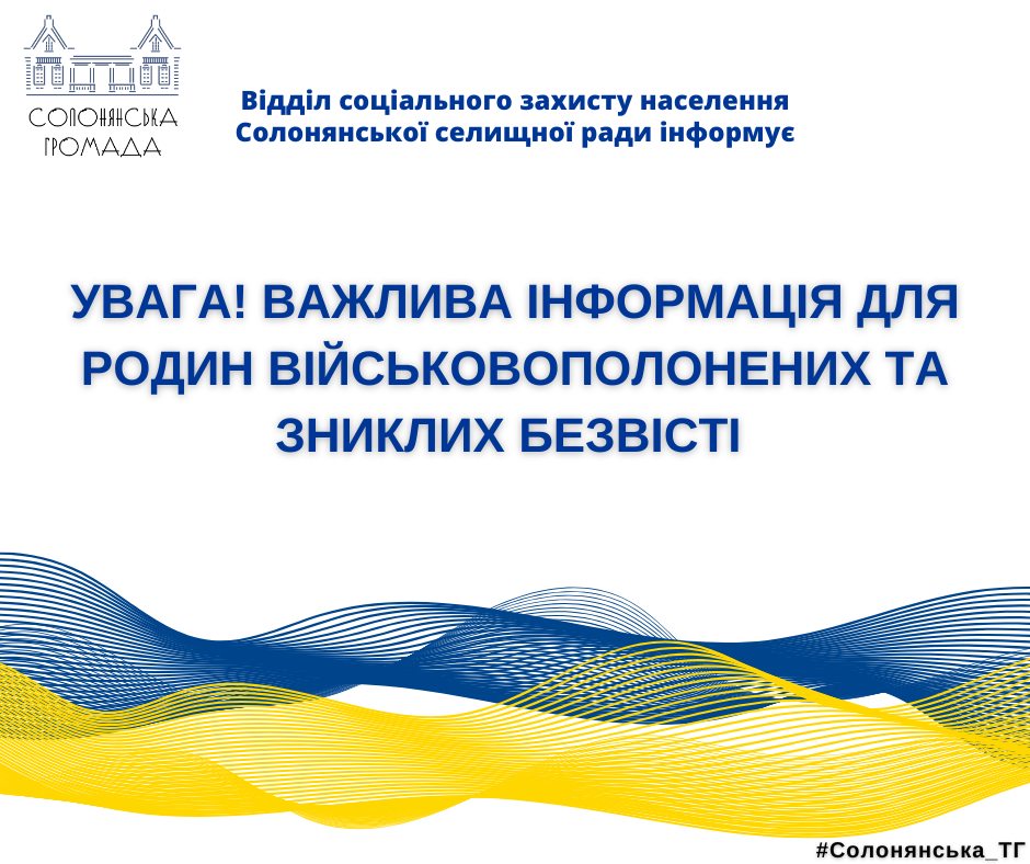 📢 УВАГА! ВАЖЛИВА ІНФОРМАЦІЯ ДЛЯ РОДИН ВІЙСЬКОВОПОЛОНЕНИХ ТА ЗНИКЛИХ БЕЗВІСТИ 📢