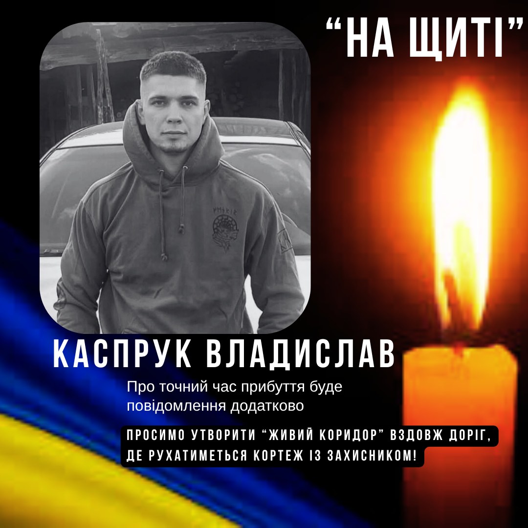 Просимо мешканців громади гідно провести в останню путь нашого Героя, військового, який захищав нас та нашу рідну країну! Його подвиг назавжди залишиться в наших серцях. Вічна пам’ять Герою Каспруку Владиславу Ігоровичу!