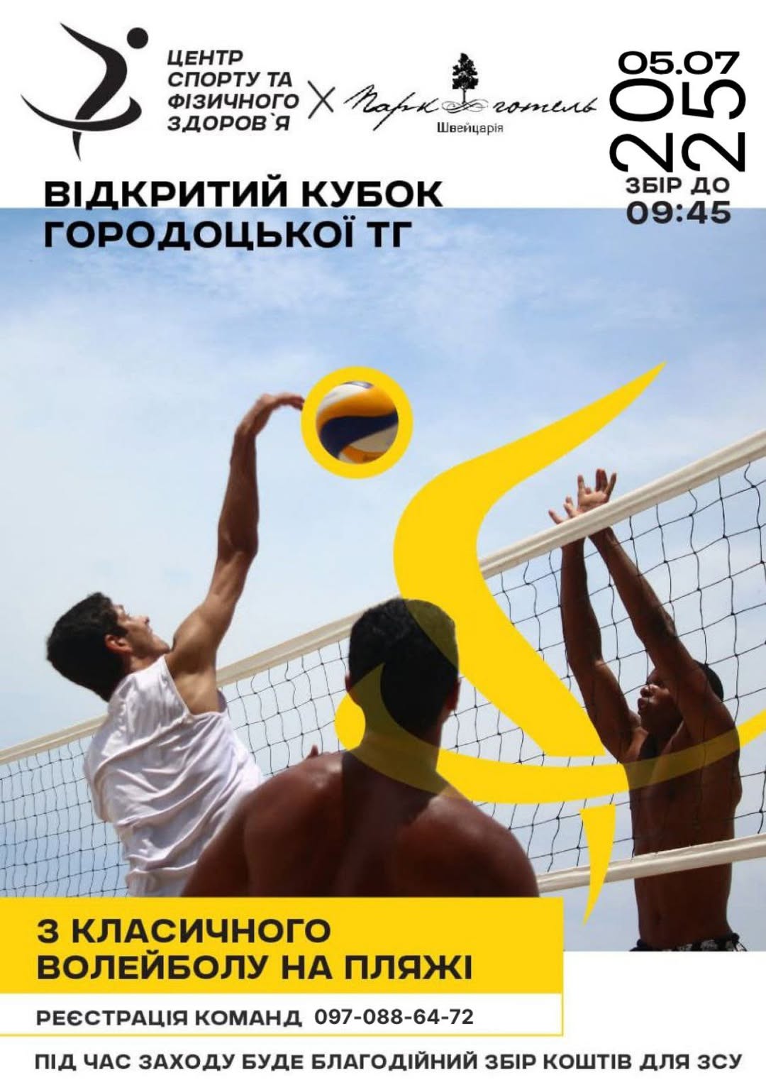 📢 Увага! Відкритий турнір з пляжного волейболу в Городоцькій громаді!У неділю, 5 липня 2025 року, у Городоцькій територіальній громаді відбудеться відкритий турнір з пляжного волейболу. Ця подія стане чудовою нагодою для всіх прихильників активного способу життя та шанувальників волейболу продемонструвати свої вміння на піщаному корті, а також насолодитися атмосферою літнього спортивного свята.🏐🏖️ Місце проведення — Парк-готель «Швейцарія», який відомий своїми мальовничими краєвидами та зручною інфраструктурою для проведення спортивних заходів. Саме тут, на березі водойми, буде облаштовано спеціалізовані майданчики для пляжного волейболу, що відповідають усім стандартам для проведення змагань такого рівня. Це забезпечить комфортні умови для учасників та глядачів.🕙 Початок — о 10:00 год. Змагання розпочнуться своєчасно, тому організатори просять учасників прибути заздалегідь для завершення реєстраційних формальностей та проведення розминки. Ранній приїзд дозволить уникнути затримок і забезпечити максимально комфортні умови для всіх гравців, а також отримати всі необхідні інструкції перед початком поєдинків.Запрошуємо всіх любителів класичного волейболу на пляжі! Цей відкритий турнір з пляжного волейболу – це не просто спортивне змагання, а справжнє свято літнього відпочинку та дружньої атмосфери. Це чудова нагода активно провести вихідний, позмагатися за кубок переможця, зустріти нових друзів та насолодитися грою в приємній компанії 🤾♀️🤾. Крім того, участь у турнірі сприятиме популяризації здорового способу життя та розвитку спортивного руху в Городоцькій громаді, об’єднуючи мешканців навколо спільної пристрасті до спорту.Учасники матимуть можливість не лише проявити свої спортивні таланти, а й отримати незабутні емоції від гри під відкритим небом. Пляжний волейбол – це динамічний вид спорту, який вимагає командної роботи, спритності, швидкої реакції та стратегічного мислення. Це ідеальний варіант для тих, хто прагне поєднати фізичну активність з приємним проведенням часу на свіжому повітрі. Переможці та призери отримають цінні нагороди та визнання.‼️ До участі допускаються лише попередньо зареєстровані гравці! Це важлива умова для формування рівних команд та складання оптимального графіку матчів. Реєстрація є обов’язковою, оскільки кількість місць обмежена, і це дозволить організаторам забезпечити належний рівень підготовки турніру, гарантуючи його високу якість. Для реєстрації, будь ласка, зверніться за контактною інформацією, яка буде надана додатково через офіційні канали Городоцької громади. Не зволікайте з реєстрацією, адже можливість позмагатися у цьому відкритому турнірі з пляжного волейболу приваблює багатьох ентузіастів. Приготуйтеся до захопливих поєдинків та справжнього спортивного азарту! Ми чекаємо на вас 5 липня 2025 року!✅ Реєстрація обов’язкова!