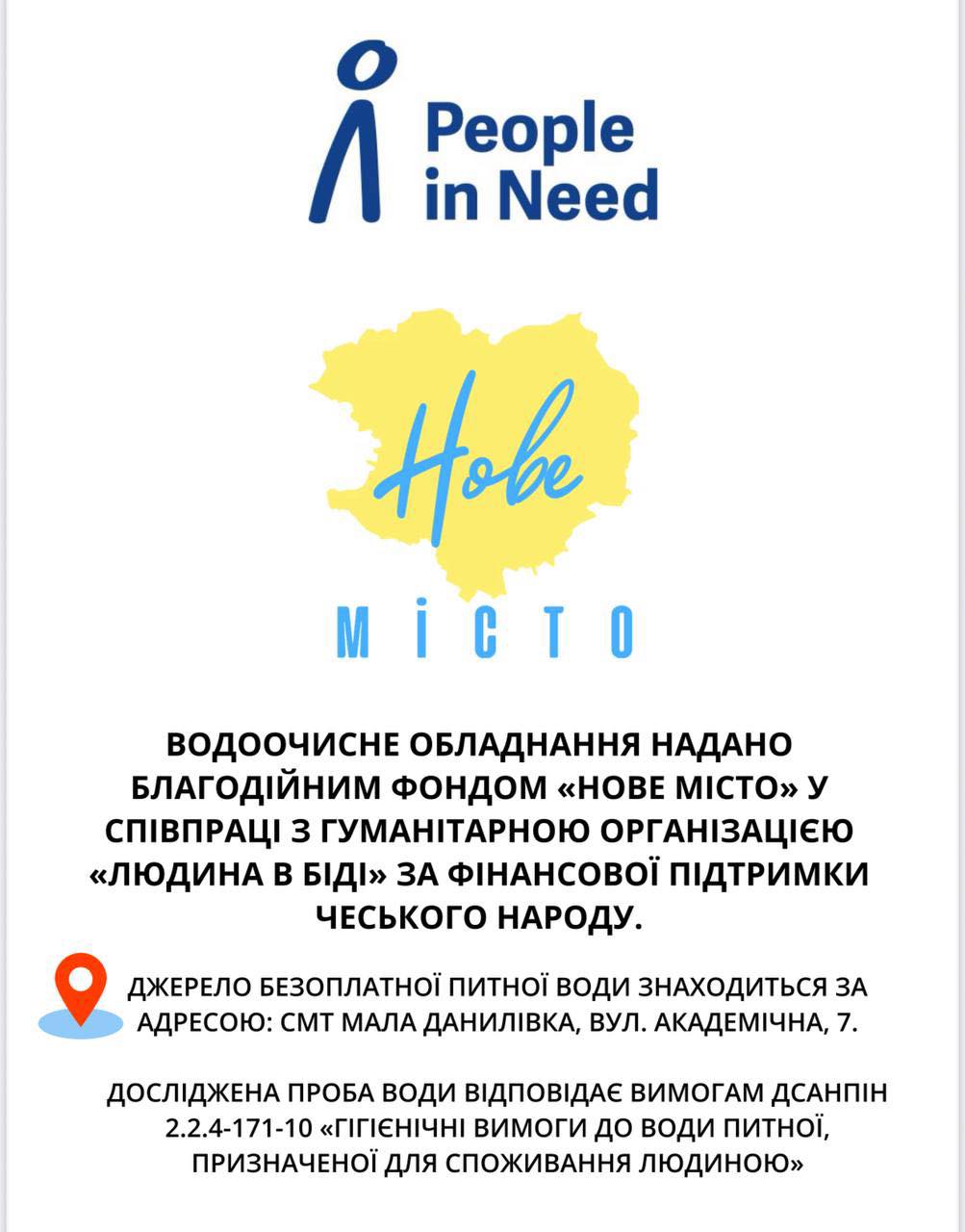 Це стало можливим завдяки встановленню сучасного водоочисного обладнання, наданого благодійним фондом “Нове Місто” у співпраці з гуманітарною організацією “Людина в біді (People in Need)” за фінансової підтримки чеського народу. Ми щиро вдячні за цю підтримку, адже якісна питна вода є критично важливою для населення.