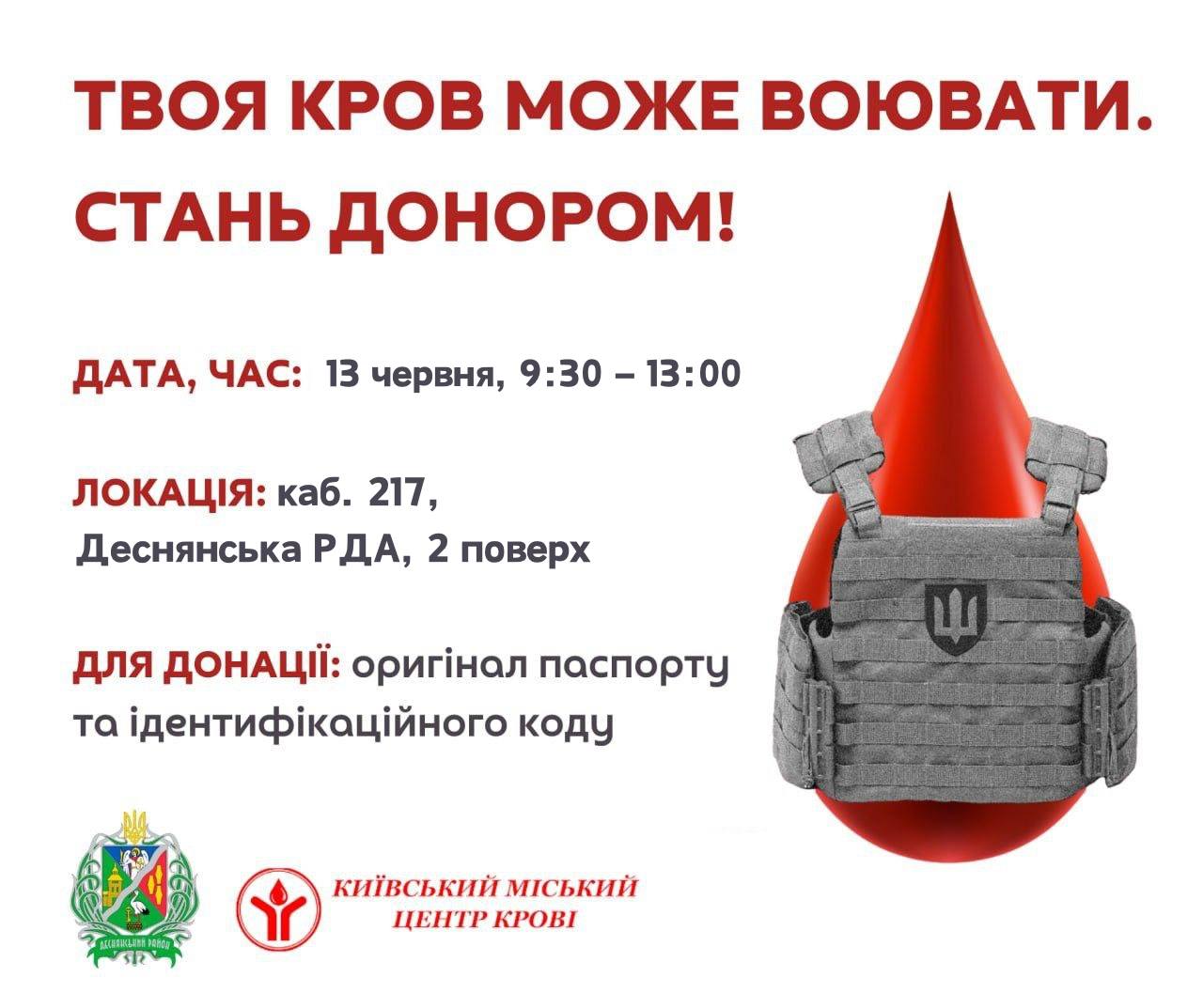 Увага, деснянці! Станьте донором крові та врятуйте життя!