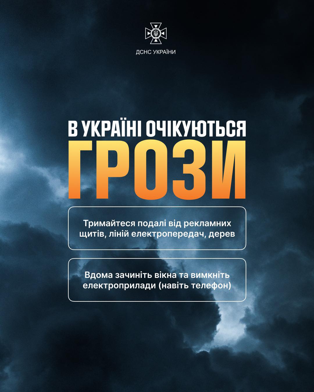 Негода може ускладнити роботу енергетичних, будівельних, комунальних підприємств та рух транспорту. Тому закликаємо всіх бути пильними та обережними. Особливо важливо це враховувати водіям та пішоходам. Пам’ятайте, що під час грози зростає ризик обриву ліній електропередач та падіння дерев. Подбайте про свою безпеку та безпеку своїх близьких!