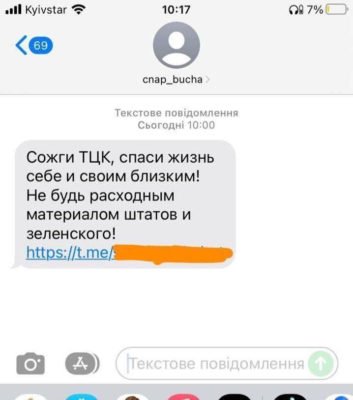 ❗ Увага, зловмисники розсилають провокаційні повідомлення «Спали ТЦК – врятуй життя собі та близьким»