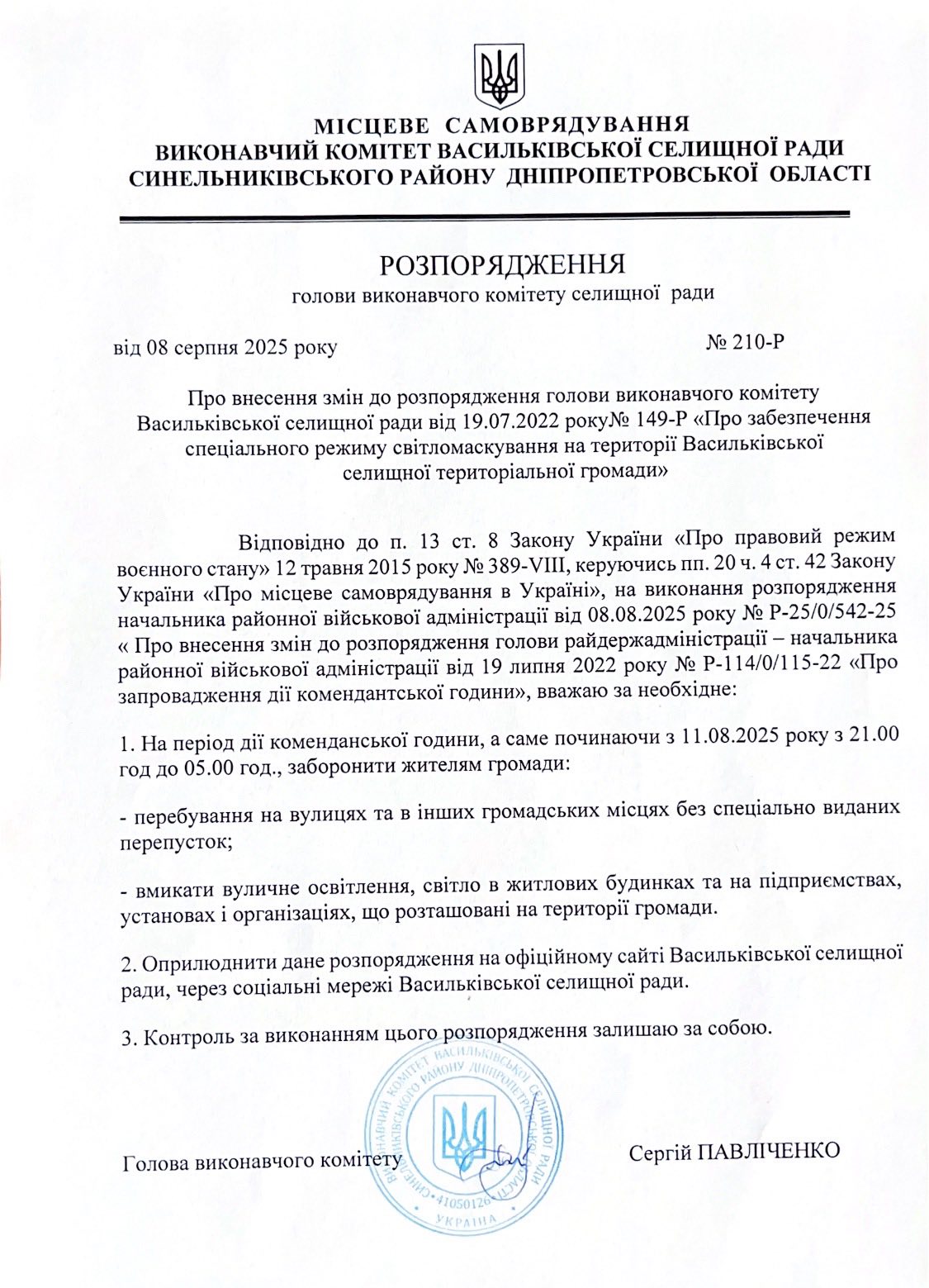 📅 З 11 серпня 2025 року комендантська година у Васильківській громаді діятиме: